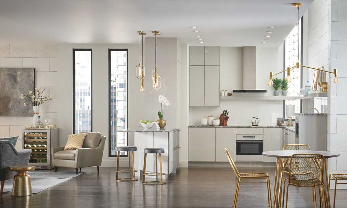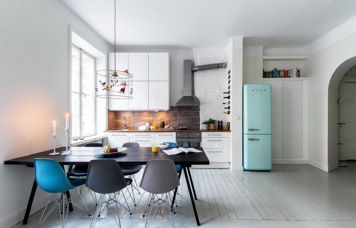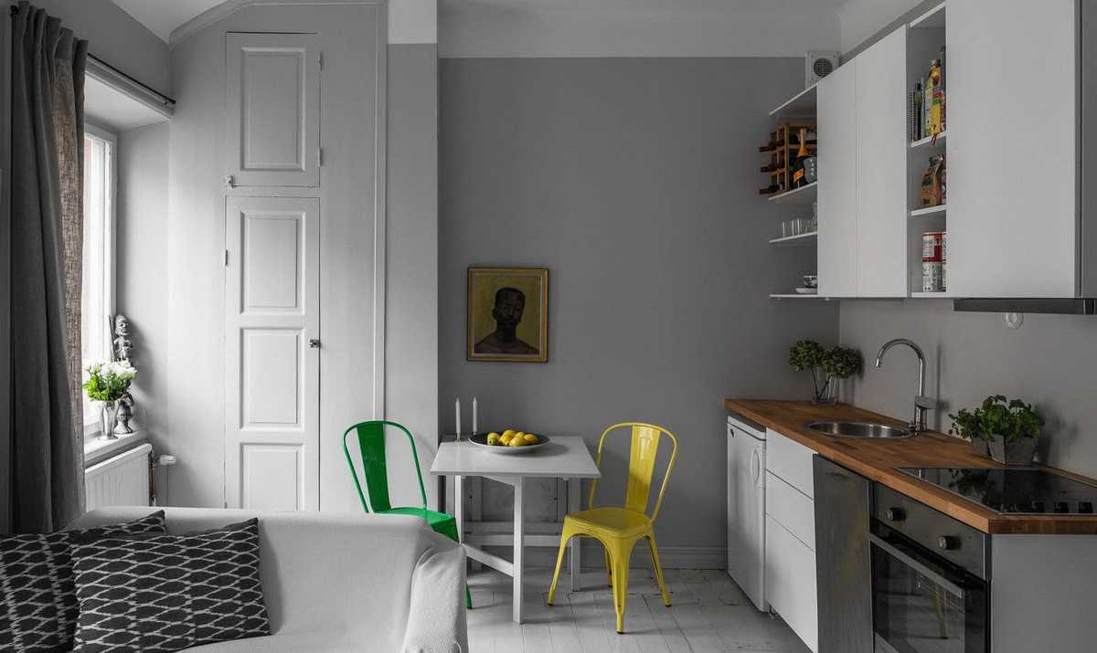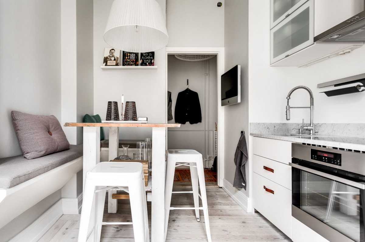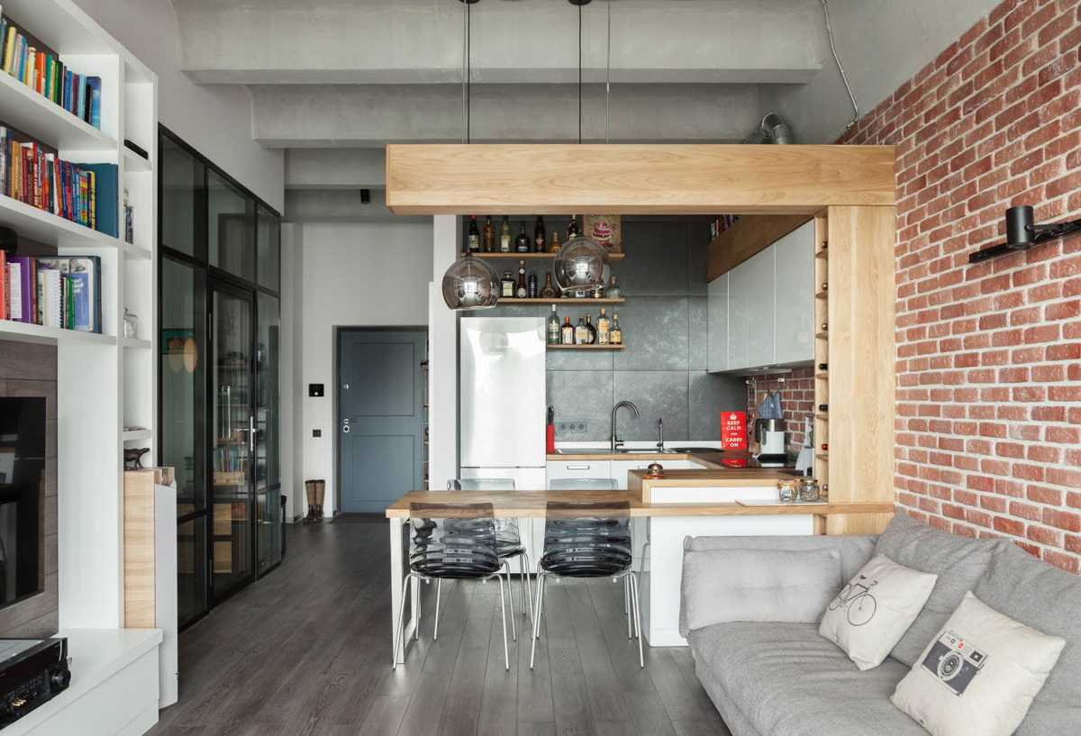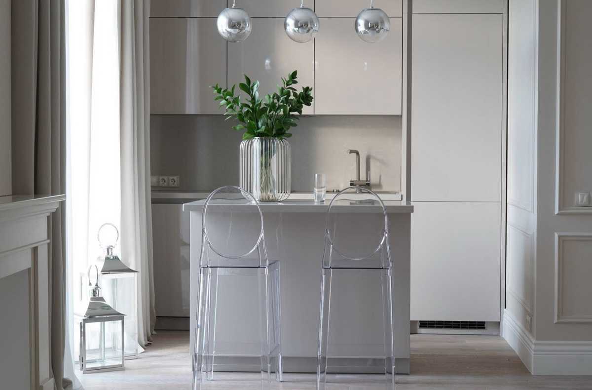 Если речь идет о малогабаритной квартире-студии, то большинство из них подразумевает наличие барной стойки. Она является своеобразной границей между гостиной и обеденной зоной. Барные стулья в этом случае будут отличным современным дополнением к общему дизайну комнаты. Многие владельцы маленьких кухонь в составе студии отдают предпочтение высоким барным стульям, которые являются не только удобными, но и необычайно стильными.