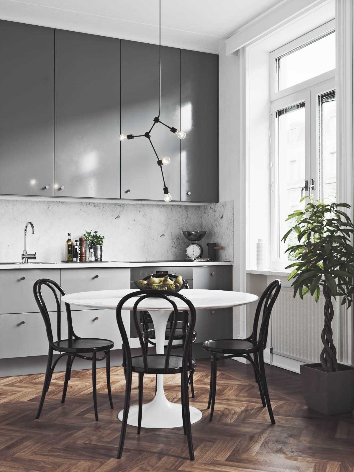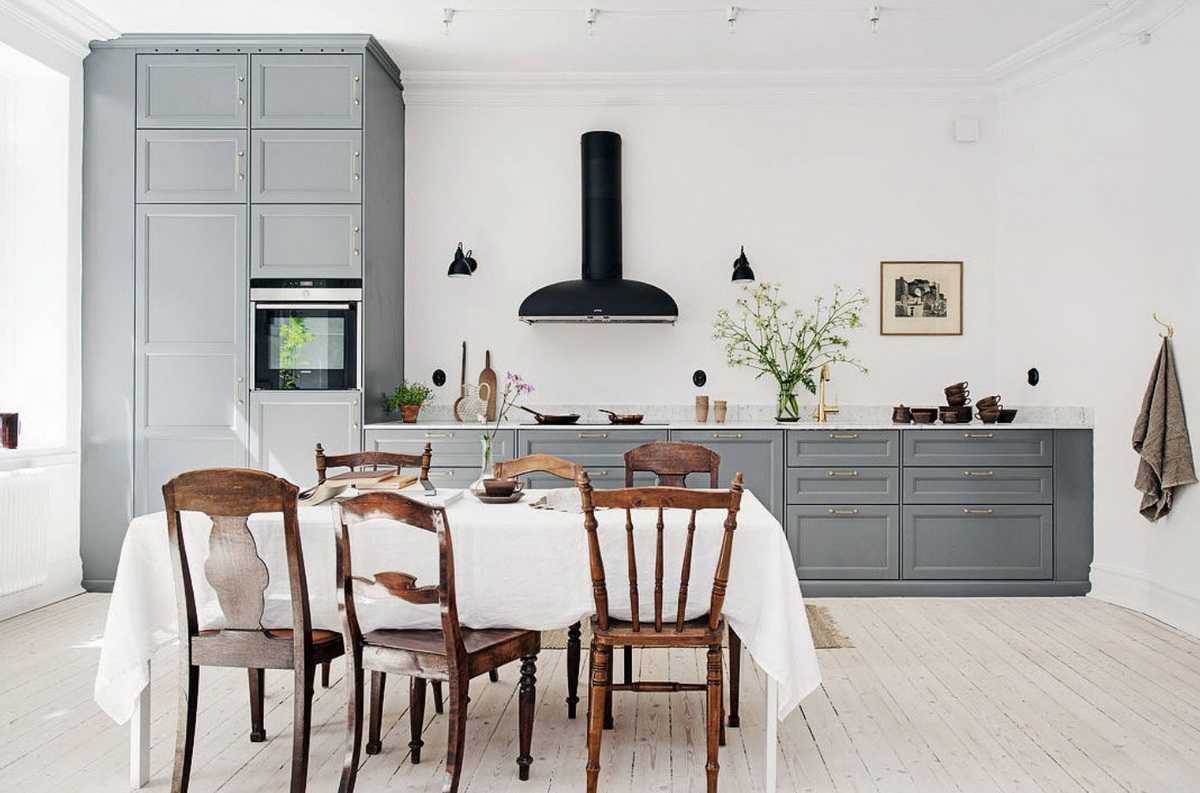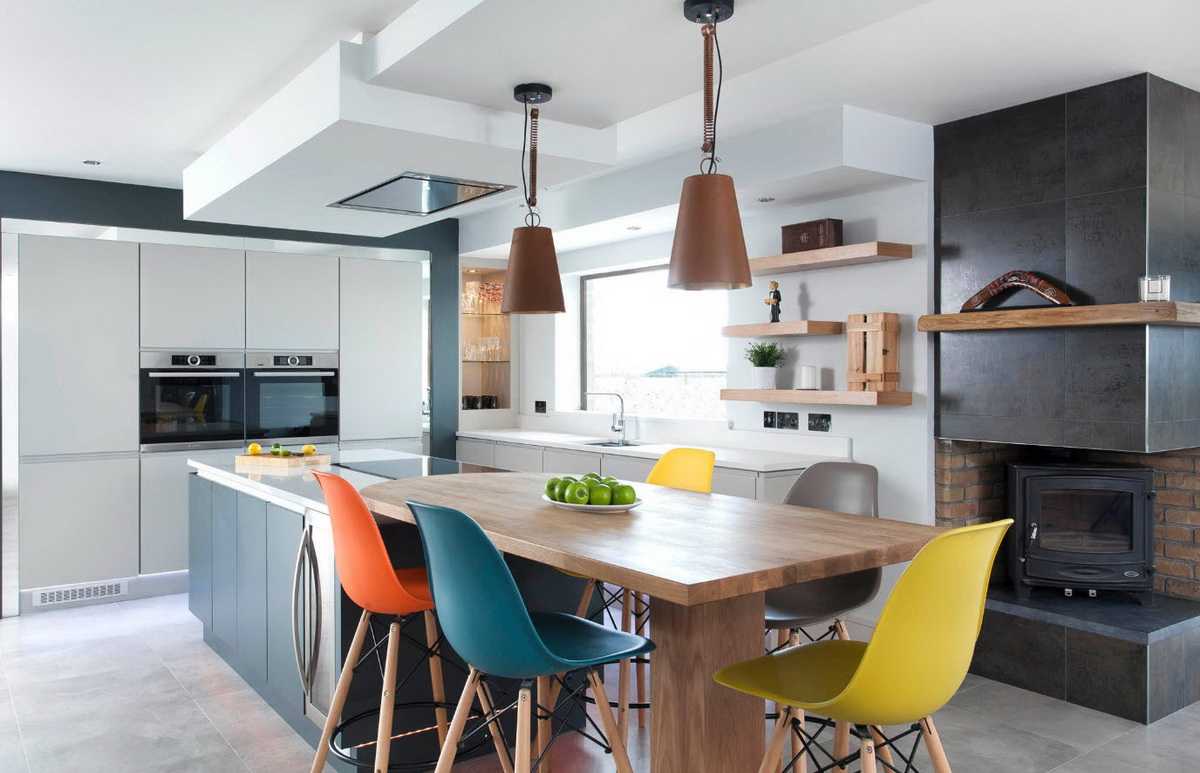 Не обязательно приобретать на кухню одинаковые стулья. В тренде – стильная индивидуальность. Предметы могут быть разной формы, но с одинаковой обивкой или одной формы, но из разных материалов.