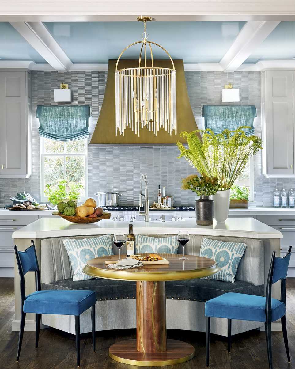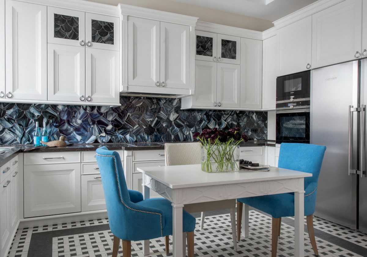 Бархат – изысканный вариант, который создаст на кухне атмосферу комфорта, уюта и одновременно шика. Этот материал сочетает в себе элегантный внешний вид и приятные тактильные свойства. При этом с помощью бархатных стульев можно добавить в кухню цветовой акцент. Выбирайте обивку насыщенных глубоких цветов с эффектным блеском – бирюзовый, малиновый, розовый, изумрудный или бордо.