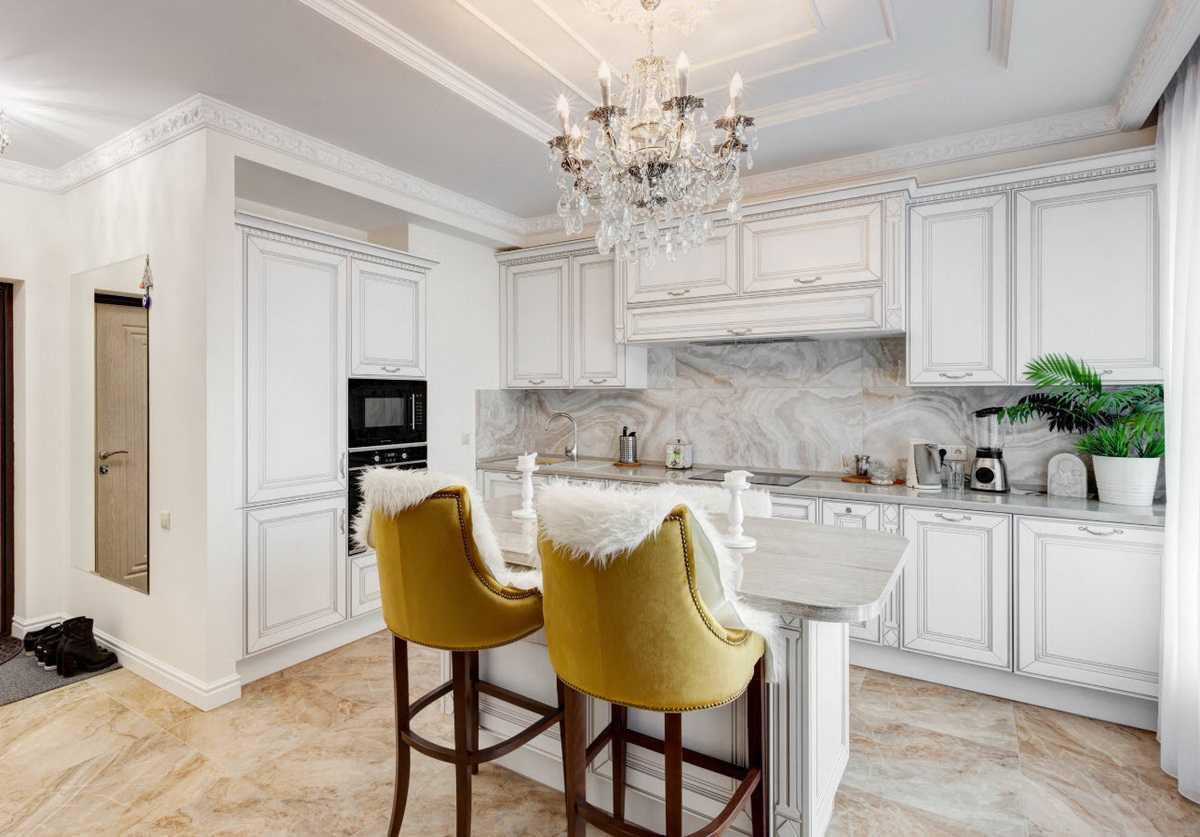 При формировании интерьера важно выдержать обстановку кухни в одном стиле. Поэтому после установки барной стойки надо приобретать стулья соответствующей формы