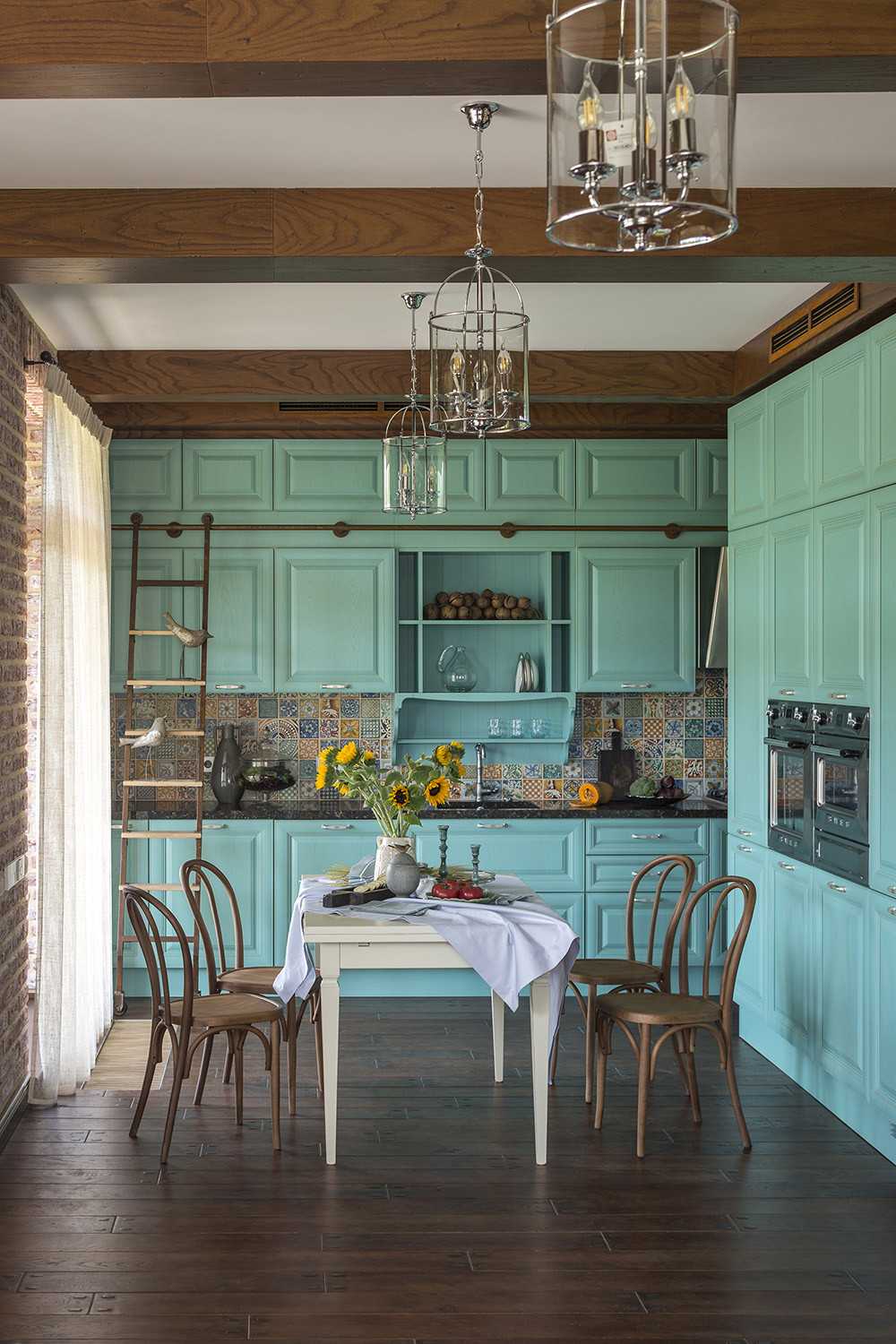 - Древесины. Это самый традиционный и универсальный вариант, он особенно актуален, если в интерьере кухни уже используются деревянные элементы – мебельные фасады или настенные панели. Обеденная группа из массива гармонирует с кухней любого стиля.