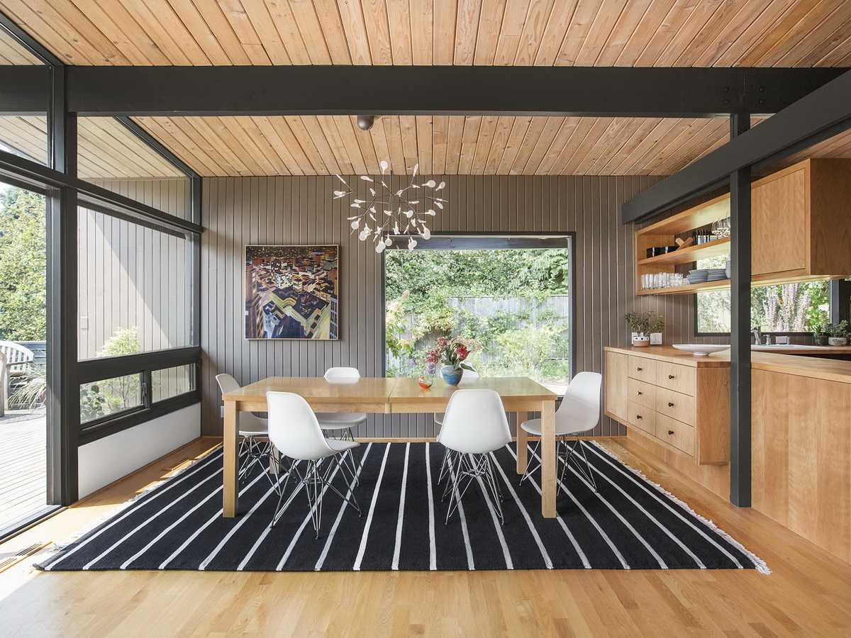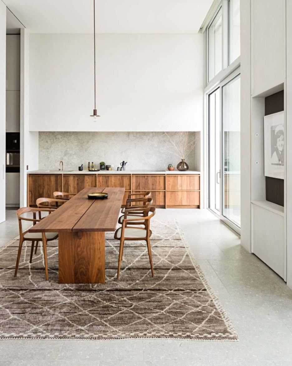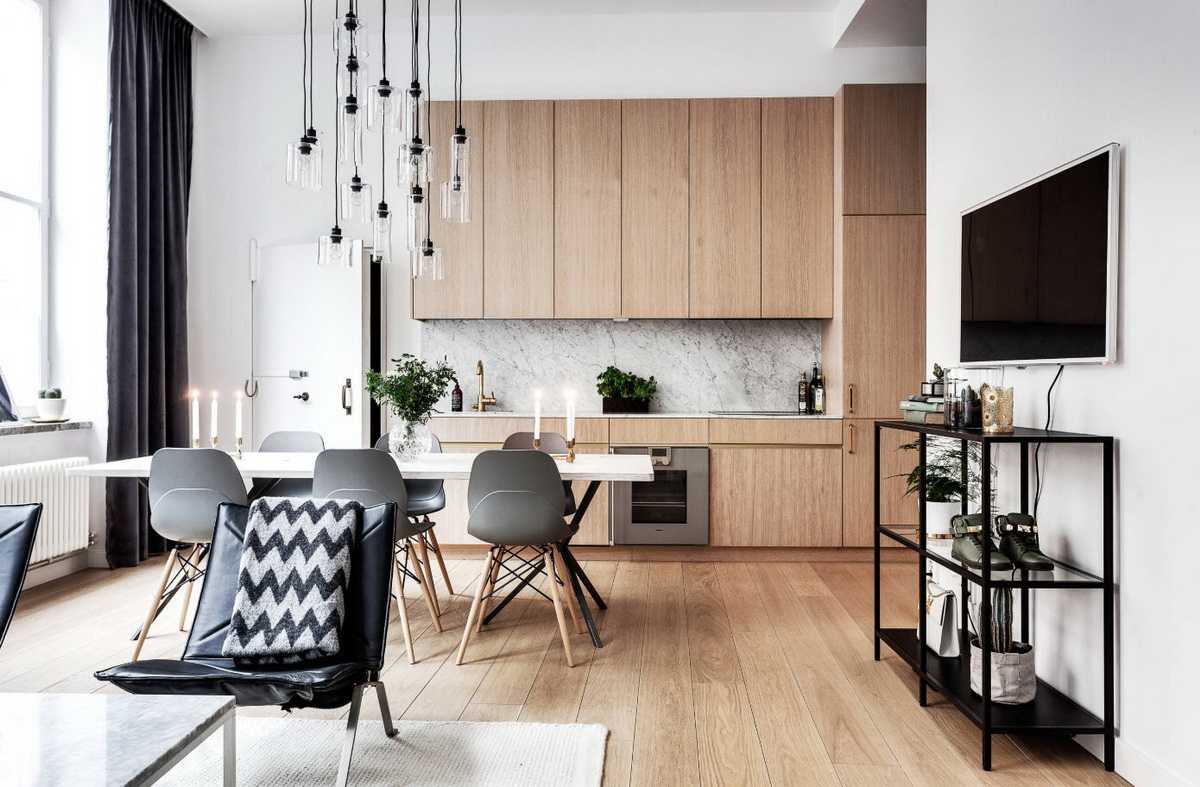 Для данного стиля подойдут сдержанные, лаконичные и при этом очень функциональные деревянные конструкции в комбинации с другими материалами, например, пластика или стекла.