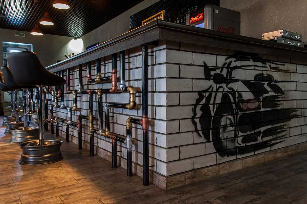 - Приветствуется наличие различных балок в области потолка, вентиляцию можно не закрывать, а железная арматура придает шарм, но никак не портит внешний вид помещения.
