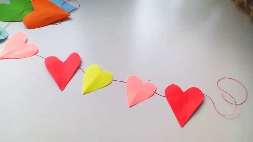 Красивая поделка из сердечек своим оформлением создаст теплую атмосферу, которая будет напоминать о скором приближении весны.
