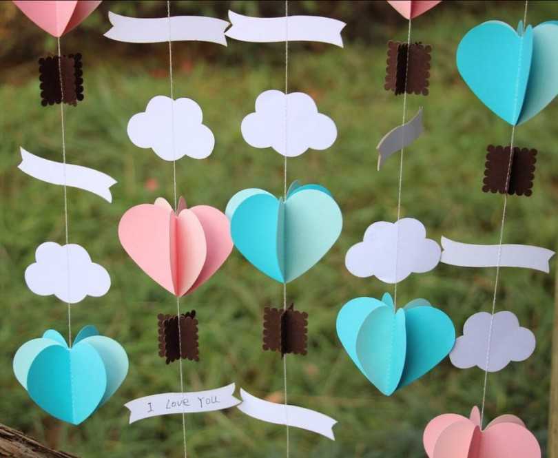 Необычная фигурная гирлянда из бумаги пастельных тонов станет прекрасным украшением торжественного мероприятия.