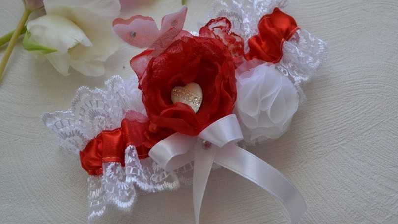 Браслетик готов! Это самый простой способ создания подвязки, при желании можно добавить что – то своё. К примеру, обшить всю длину стеклярусом, или пришить кружево. Вместо ленточки возможно использование толстой нити. Немного фантазии и подвязка будет не хуже, чем в магазине.
