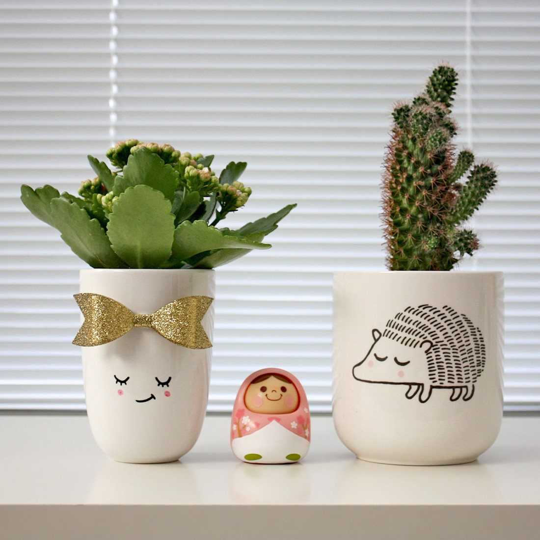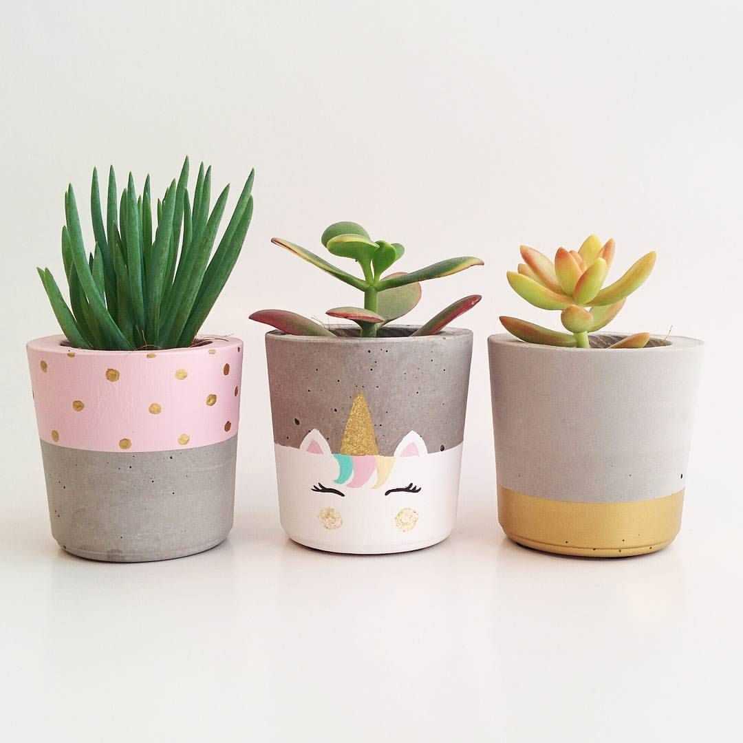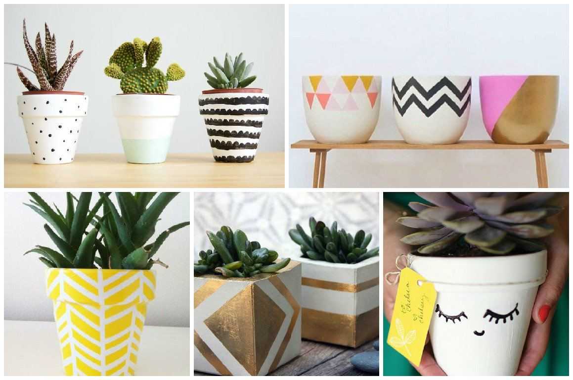 Но и тут можно подойти креативно: нарисовать горошинки при помощи карандаша с резинкой; полоски, ромбы тонкой кисточкой или фломастерами; выкрасить серебряной краской из баллончика и сделать «металлические» горшки; покрасить в стиле омбре.