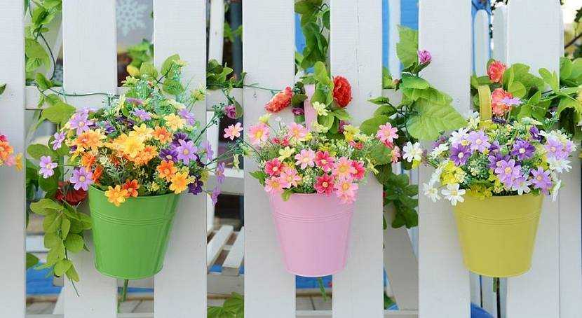 - Особенно эффектно смотрятся круглые подвесные горшки, которые развешивают в саду или на балконе. Можно повесить целую композицию из горшочков, разместив их на плоской перекладине или под потолком. Такие емкости могут иметь и квадратную форму.