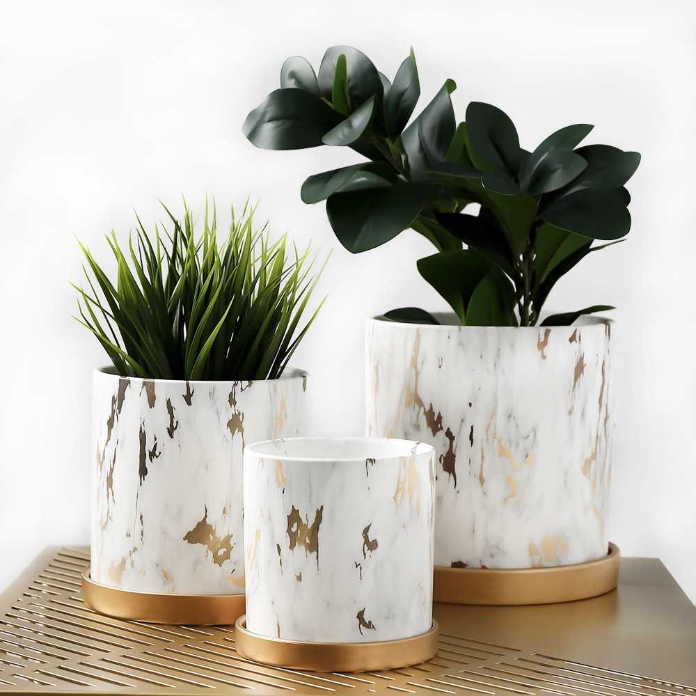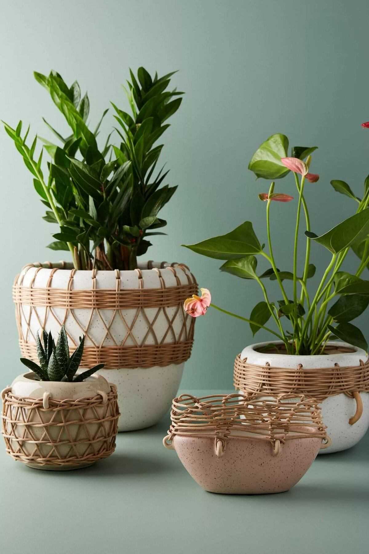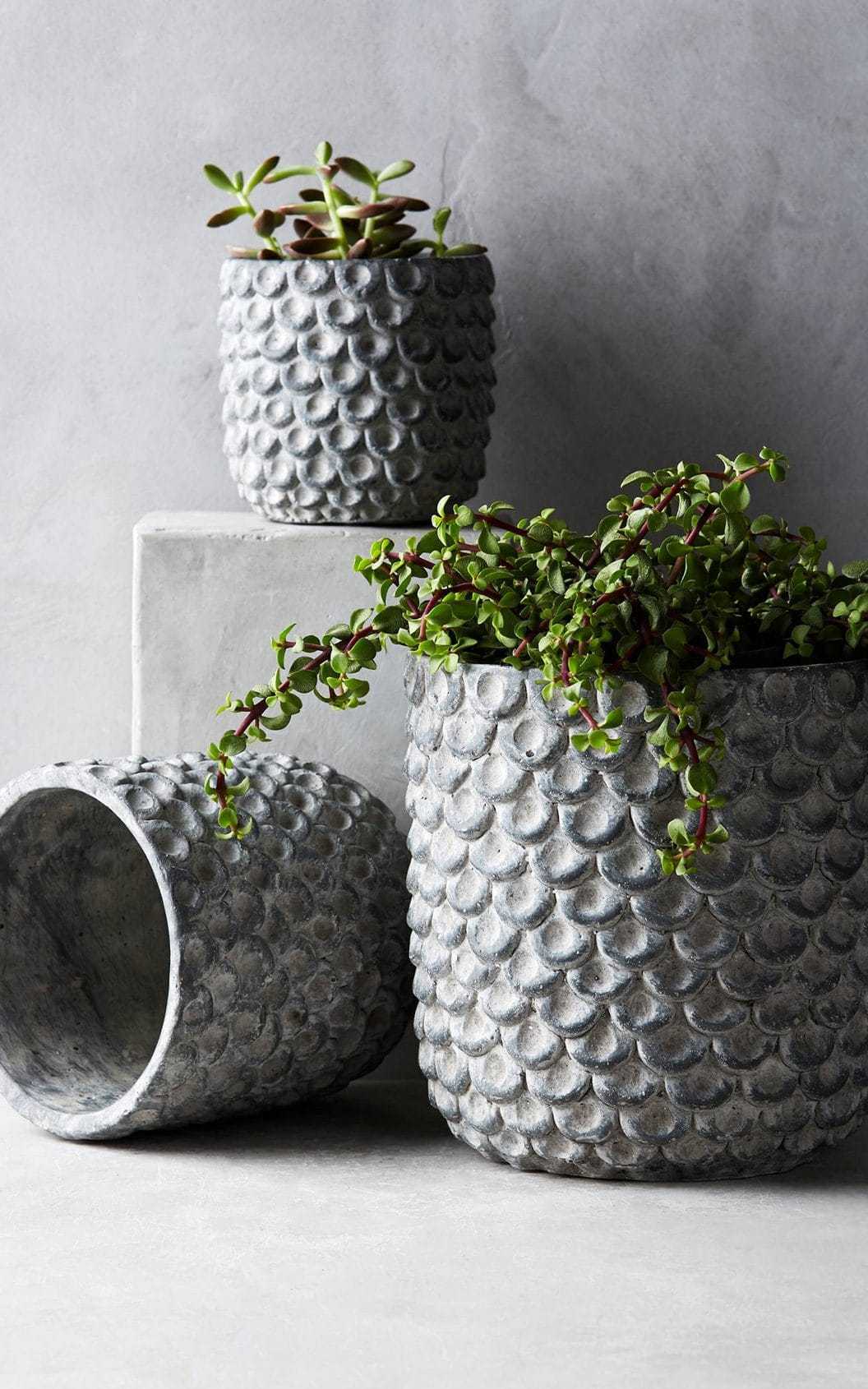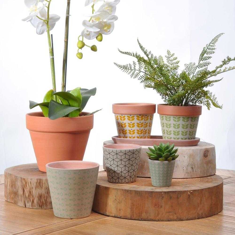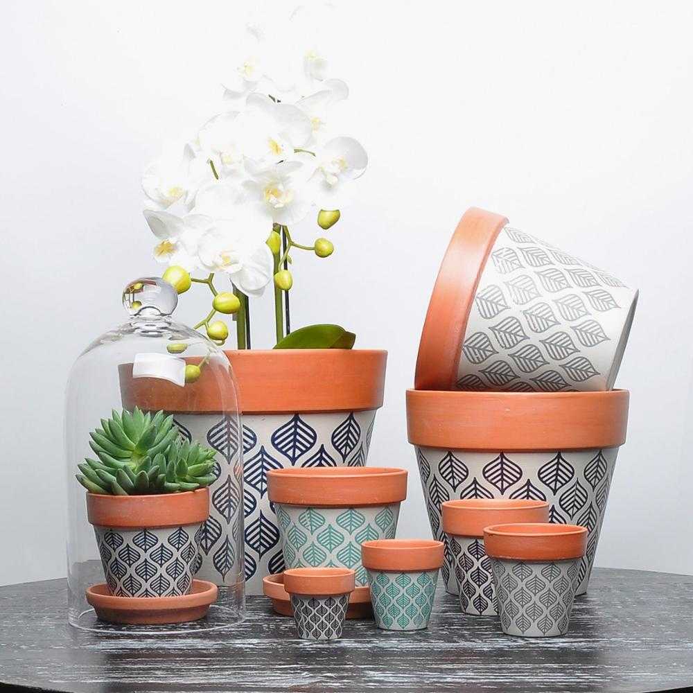 Помимо стильного изображения, для удачного декорирования понадобятся правильные поверхности. Как говорилось ранее, проще всего работать с гладкими горшками, однако более эффектно выглядят фактурные вазоны.