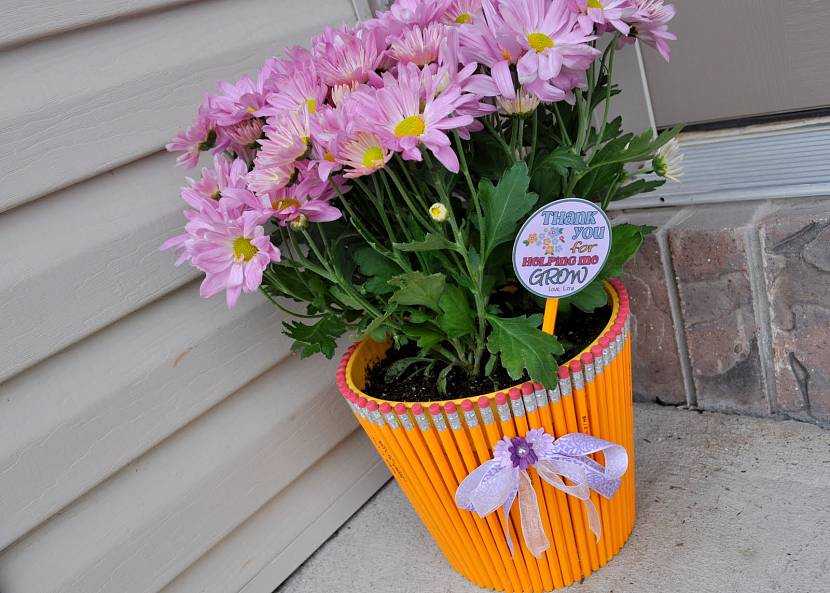 Украшение цветочного горшка с помощью карандашейИсточник dekormyhome.ru/