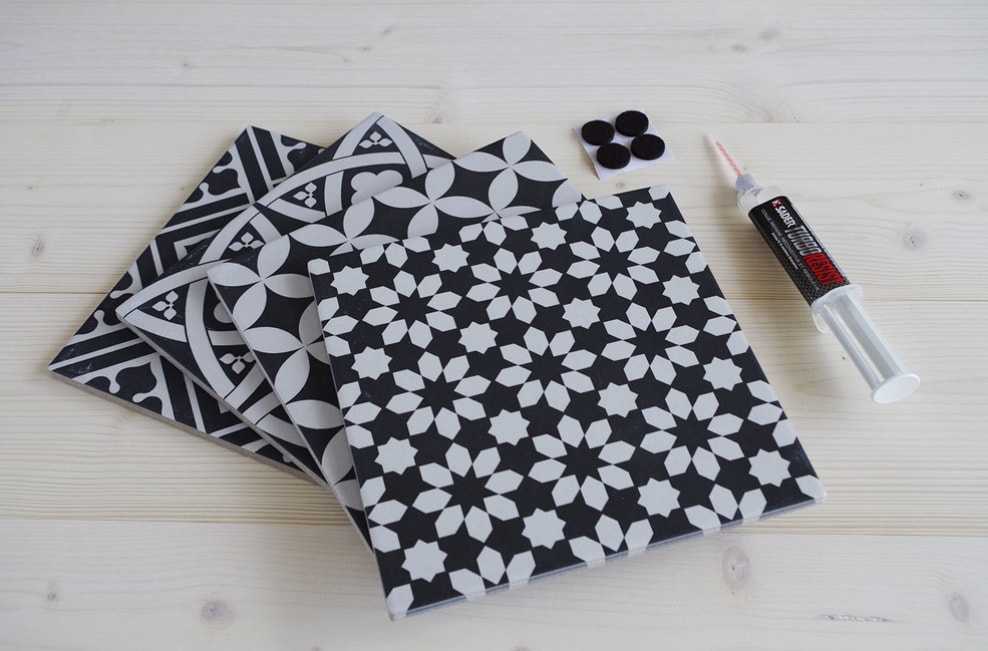 Используются любые осколки и остатки, в том числе после строительства и ремонта, кусочки керамической плитки, камушки, пуговицы. Поверхность обрабатывают наждачной бумагой, покрывают грунтом, а сверху – клеем.