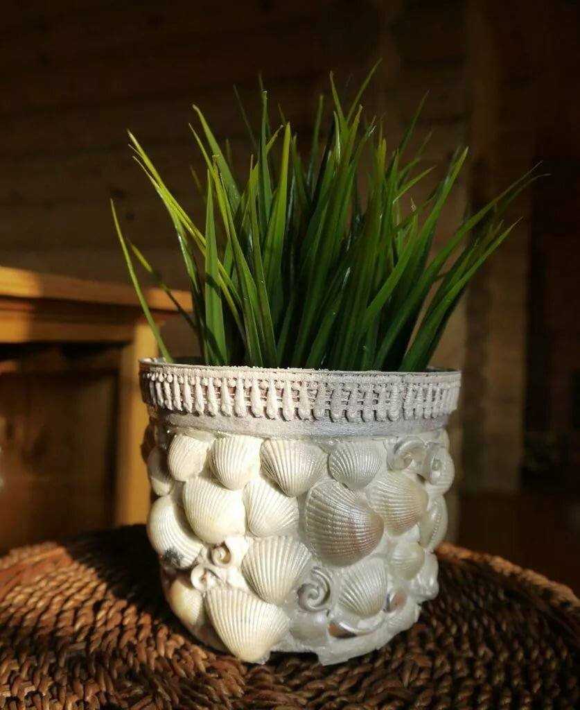 Крепятся они способом, аналогичным предыдущим. То есть все держится за счет клея. В остальном дело только за вашей фантазией. Из ракушек можно создать отличный морской мотив на поверхности горшка, просто расположив их в определенном порядке. Еще одна идея, которая будет напоминать о хорошо проведенном времени: перенести на основу фотографию с помощью техники декупаж и сделать рамку из ракушек. Дополнить дизайн, расположив оставшиеся по площади. По желанию их можно покрыть блестками или краской.