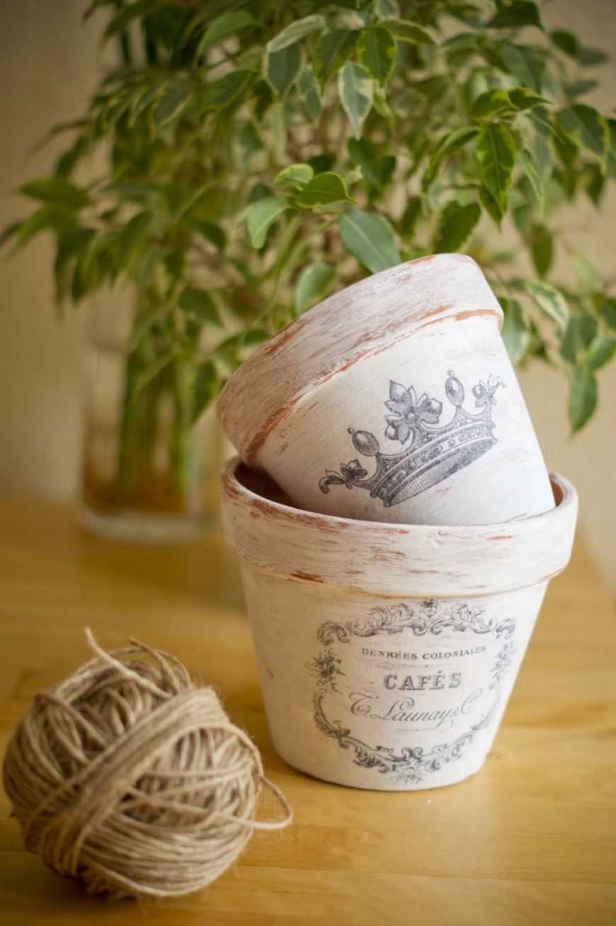 Декор цветочных горшков в стиле прованс или как быстро состарить цветочный вазон