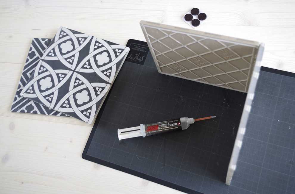 На одно ребро плитки наносим клеи и приклеиваем вторую плитку.
