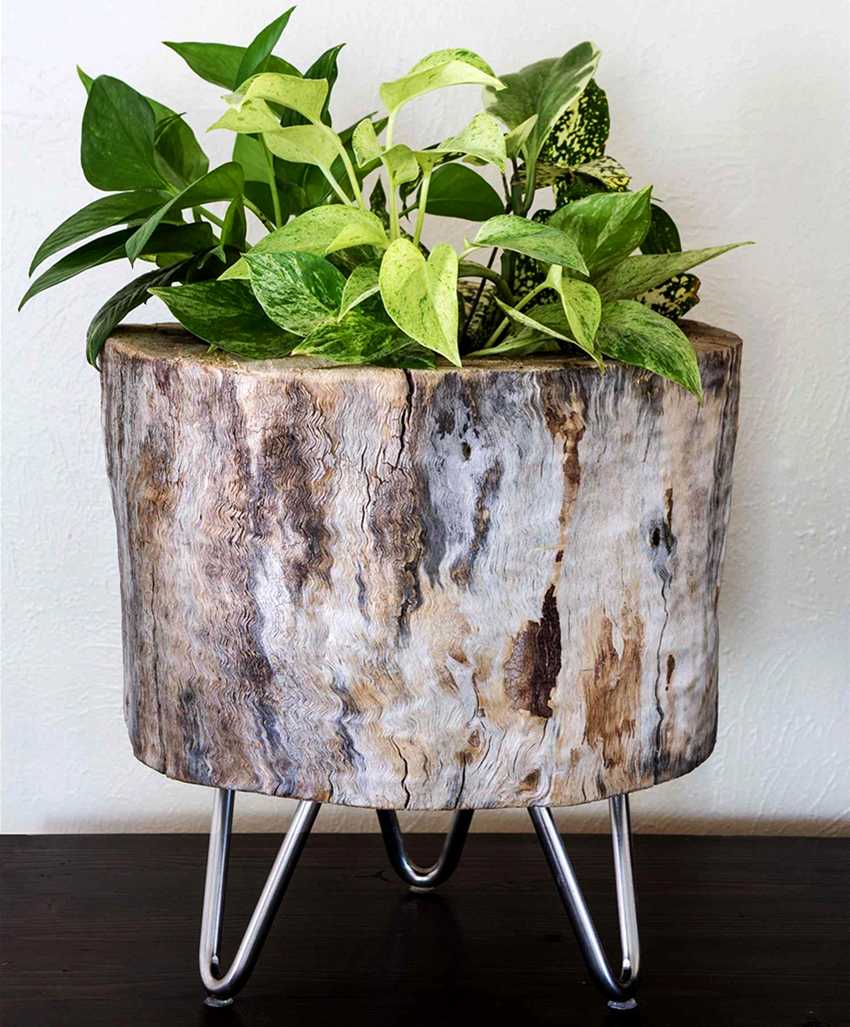 Большой горшок из сруба отлично впишется в интерьере с эко дизайном