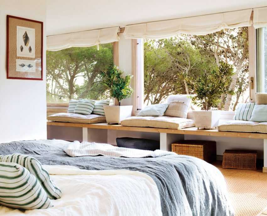 Подоконнику редко уделяют внимание при оформительских работах. А зря, этот конструктивный элемент способен подарить совершенно нестандартное оформление спальному помещению
