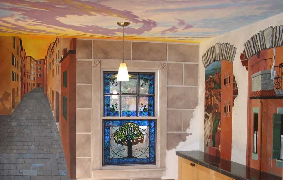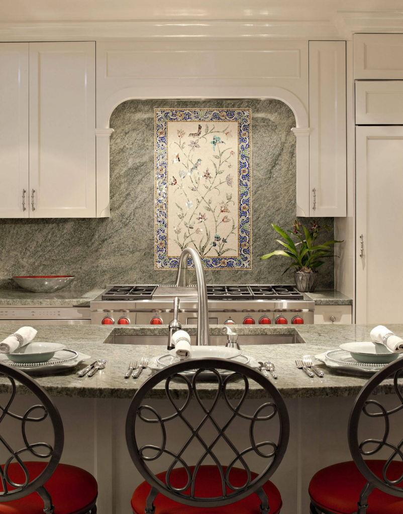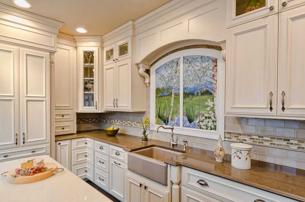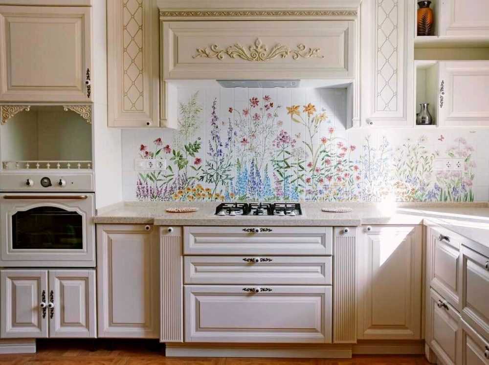 Гармоничная отделка стен живописными панно из плитки позволит создать запоминающуюся интерьерную композицию, которая не встретится ни в одном другом кухонном пространстве.