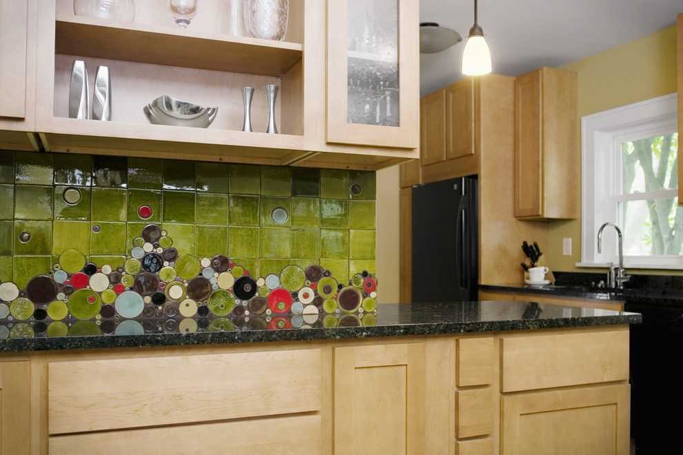 4Плитку ярких цветов лучше применять в дизайне большого кухонного пространства, для кухонь маленького размера дизайнеры советуют использовать оформление фартука в спокойных пастельных тонах.