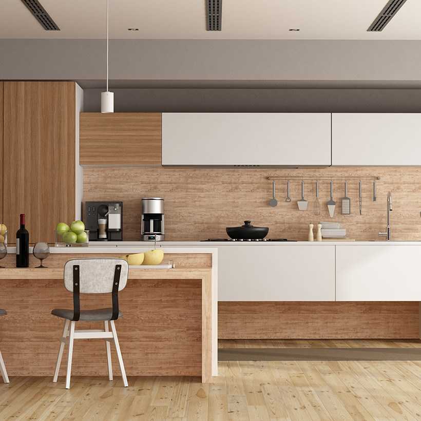 У твердых плит есть много текстур. Матовая считается бюджетной, но хорошо комбинируется с многими видами отделки (пластиковые или стеклянные панели, обои, окрашивание). Полированная плитка имеет глянцевый перелив. Зеркальная поверхность приятна по ощупь и просто очищается. Но на ней слишком просто поскользнуться, поэтому её применяют для фартуков, фасадов гарнитура и раковин.