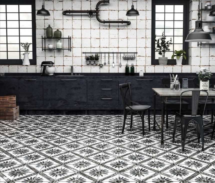 Также частым вариантом становится использование плитки-мозаики или кафеля с трафаретным рисунком. Подобные модели удачно сочетаются с современными стилями интерьера – Лофт, минимализм и эко-стиль.