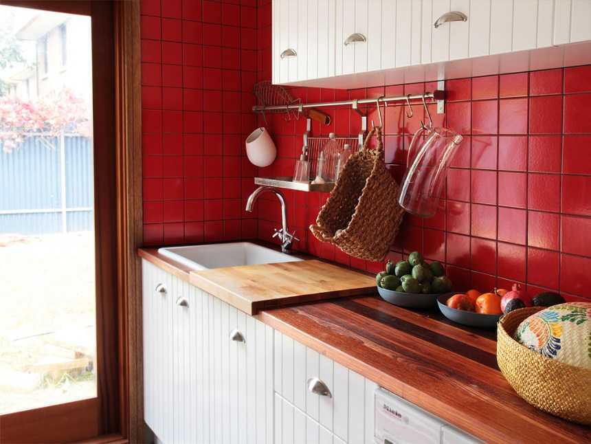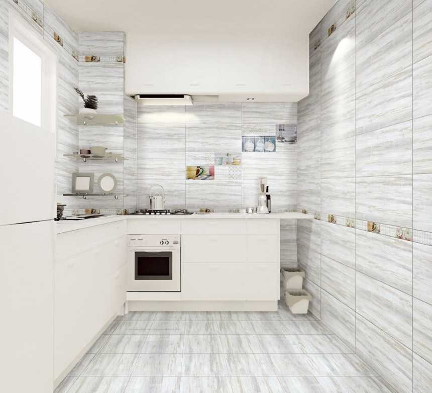 Ширина и высота кухни тесно взаимосвязаны с выбором плитки для рабочей зоны. Часто встречаются варианты плитки 20х20 и 20х30. Такая большая плитка часто разделена на квадраты стандартного размера 10х10 см. Как правило, на такой плитке изображены фрукты, чайные сервизы или овощи. Мелкая плитка начинается от 2,5 х 2,5 см. Она отлично подходит для оформления кухонного фартука в виде мозаики