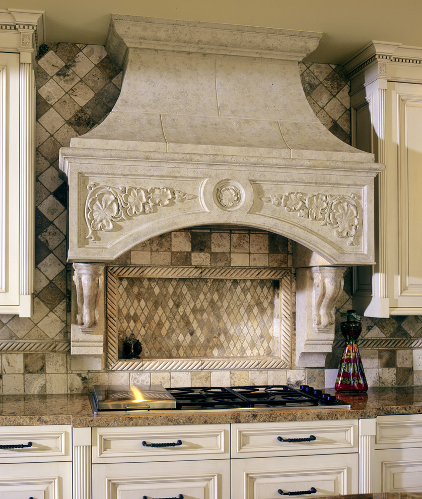 - Декоративные элементы часто используют при облицовке фартуков. Это могут быть вставки с плоским или рельефным рисунком. Их размеры должны полностью совпадать с общей плиткой и по высоте, и по ширине и по толщине.