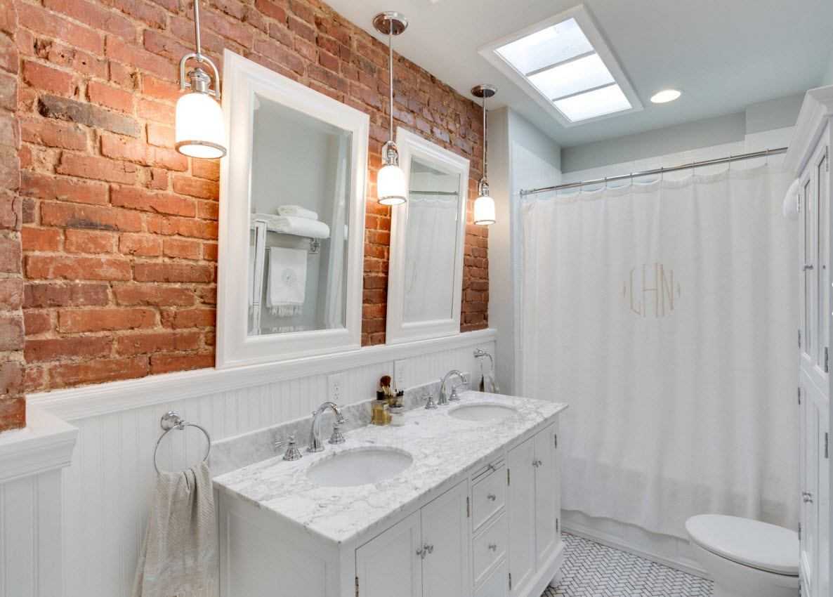 Белую кирпичную стену можно сочетать в одном помещении с «традиционной» кладкой.