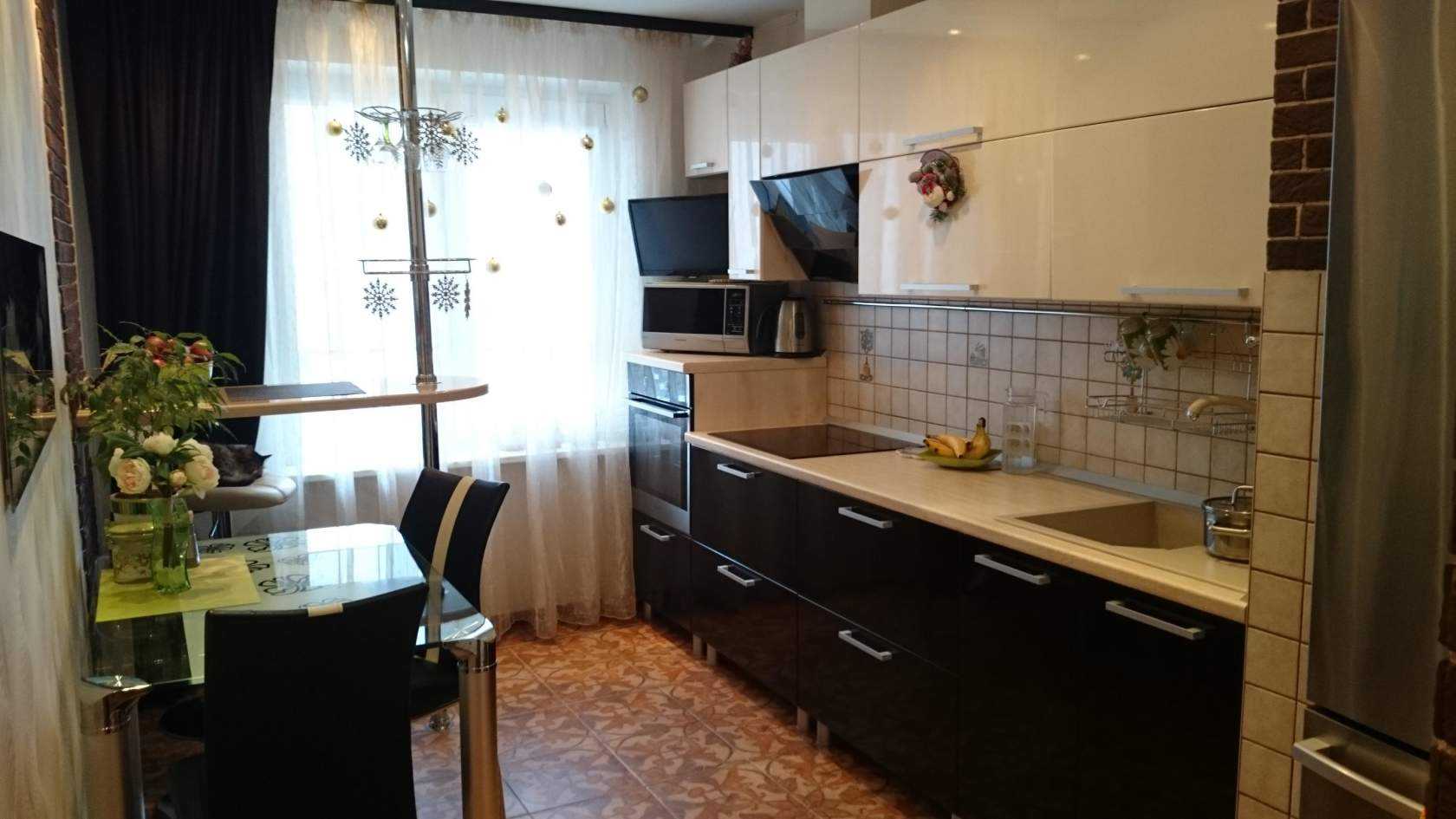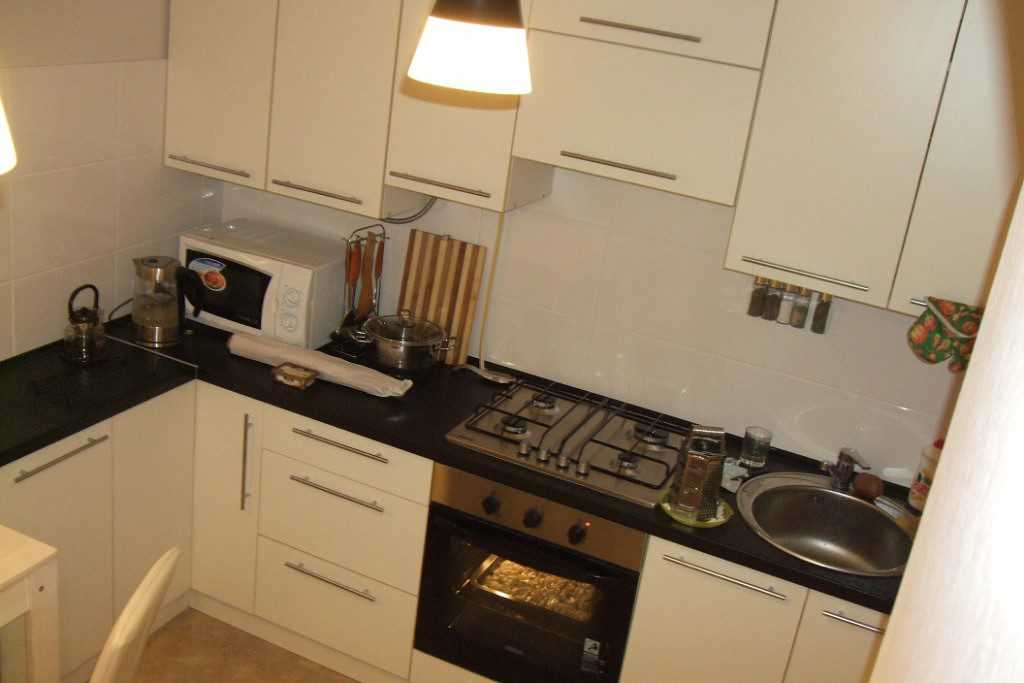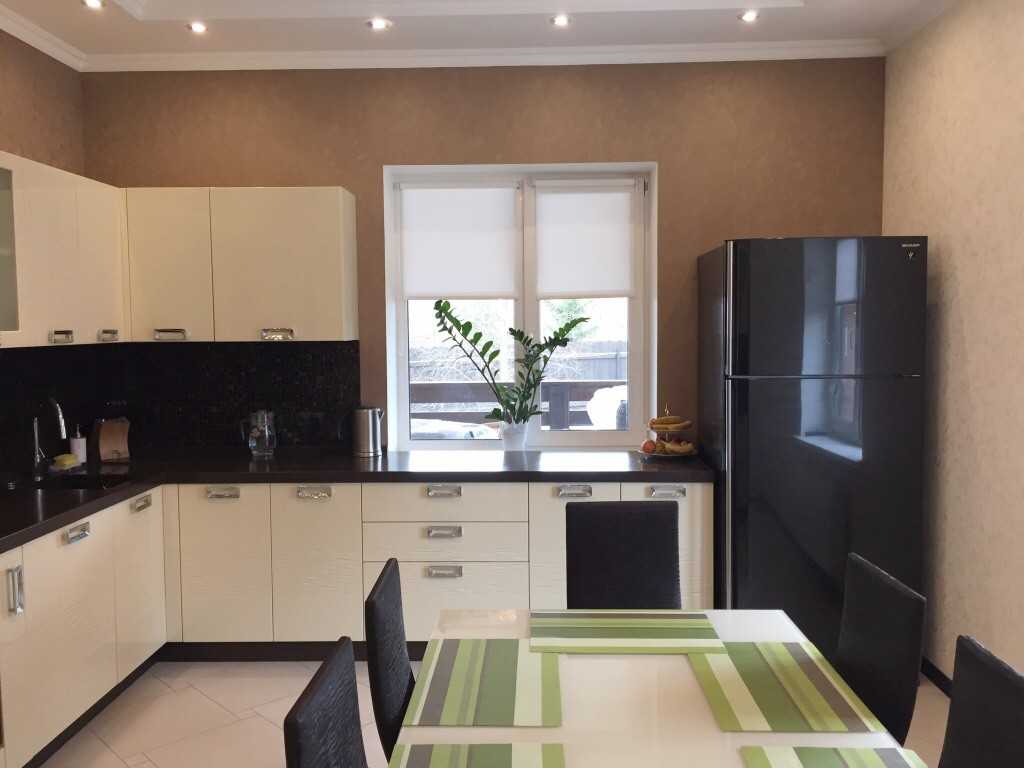 Очень стильно выглядит бежево-черная кухня. Главное при таком выборе не переборщить с черным цветом, чтобы помещение не было сильно мрачным и темным. Лучше сделать некоторые темные акценты, например столешницу, стулья, отделку стен.