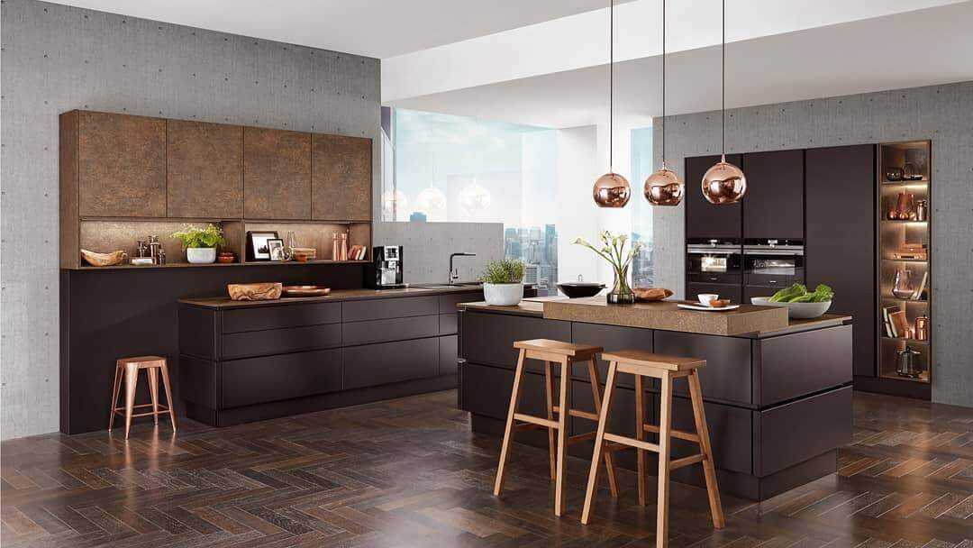Если говорить о коричневой гамме в интерьере, то гарнитур такого цвета может выступать гармоничной основой в кухне-гостиной или отдельном кухонном секторе. Известно, что коричневый чаще всего ассоциируется с добротной, природной древесиной, но не только. Аналогично бежу, он имеет целый набор аппетитных оттенков: кофе со льдом, тёмный и горячий шоколад, кофейно-бежевые тона, которые могут стать базой шикарной и элегантной кухни.