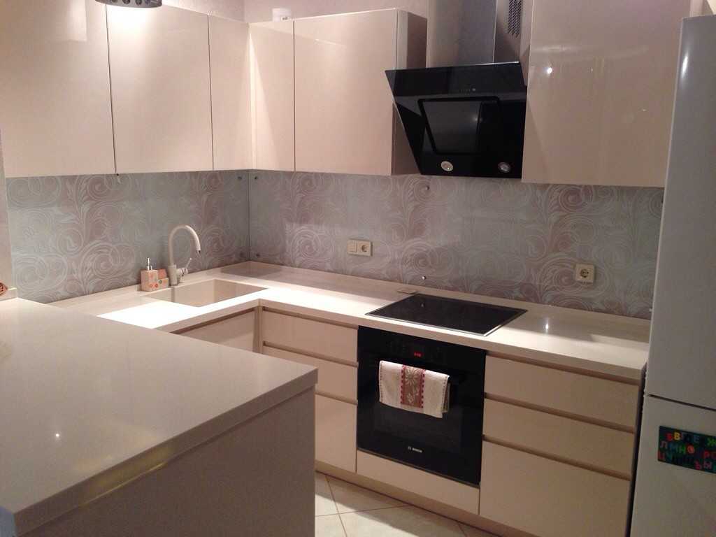 В скромной по площади комнате можно сделать тёмные и светлые фасады глянцевыми. Отражающие поверхности помогут визуально расширить границы помещения. Уравновесить двухцветную комбинацию поможет включение третьего цвета, для чего подойдёт столешница или кухонный фартук. Такое дополнение смягчит слишком контрастное сочетание основных оттенков, что всегда приятно для глаз.