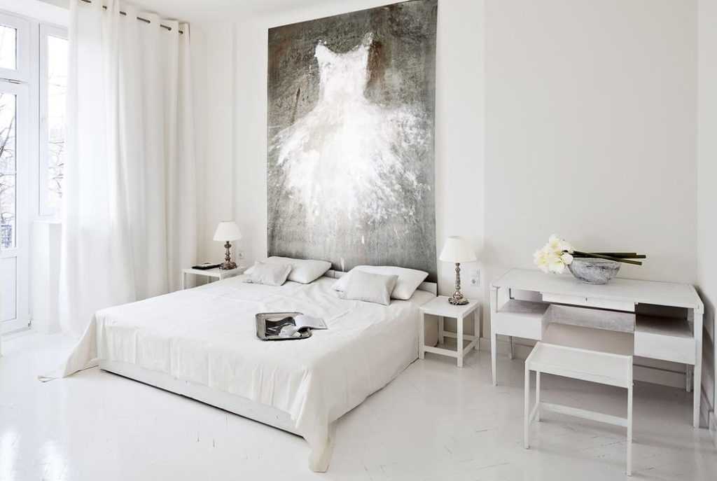 Картины и фотографии. Это может быть полноценная роспись одной из стен спальни, репродукция картины известного мастера или работа фотохудожника. Выбор жанра зависит от стилевого направления. В интерьерах с подчеркнутой натуральностью будут уместны природные мотивы; более смелые решения – фон для авангарда, абстракций и снимков;