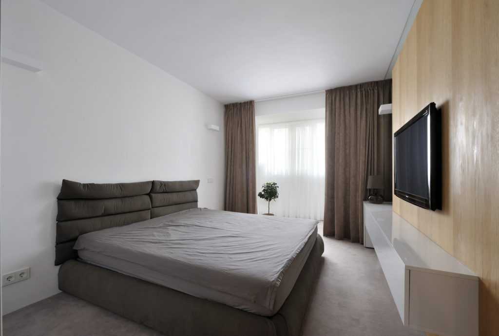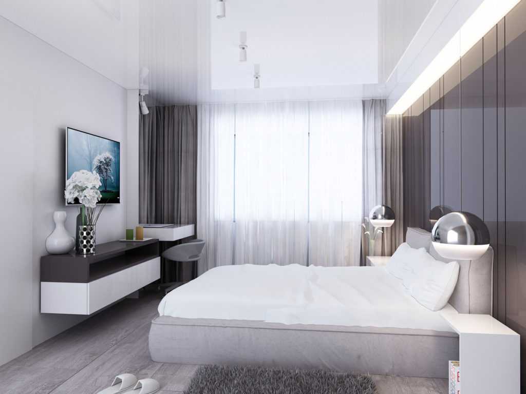 Оформление спальни в стиле минимализм с рабочей зоной и телевизоромИсточник rehouz.info