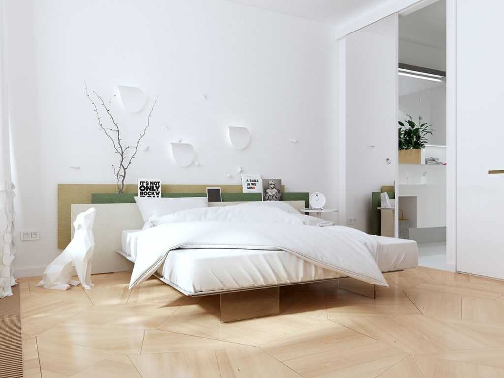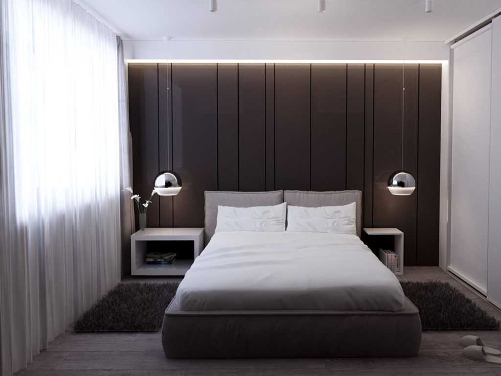 Оформление спальни в стиле минимализм без декорированияИсточник rehouz.info