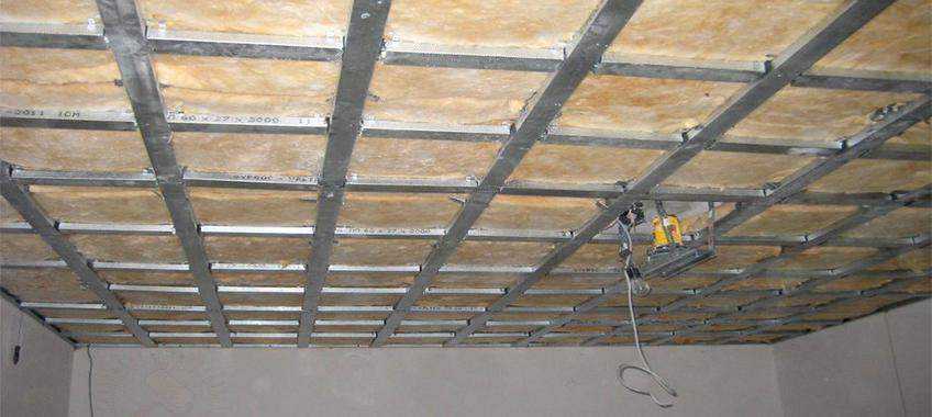 - В направляющие вставляется потолочный профиль. Частота шага – от 40 до 60 см.