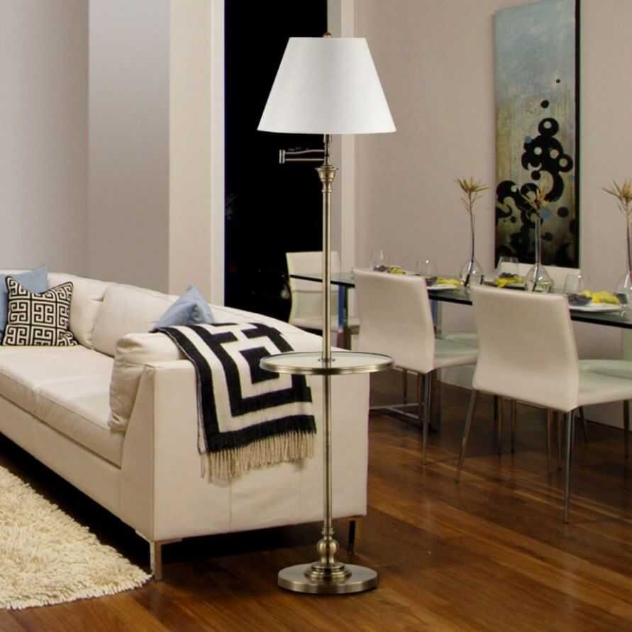 Столик может служить и полочкой, когда не используется. В основном такие светильники выбирают в интерьеры с современным и минималистичным оформлением.