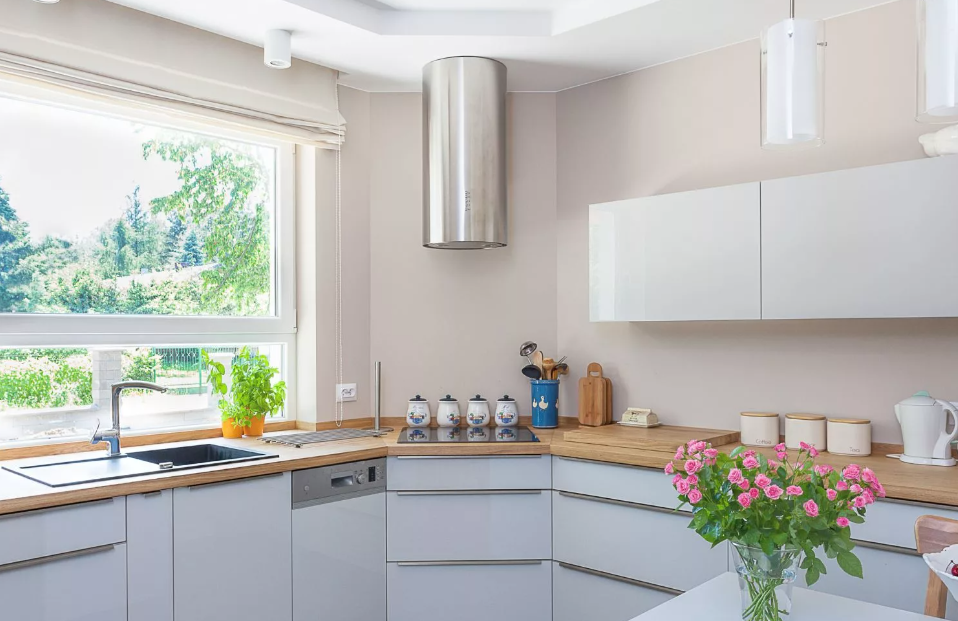 На первый взгляд, абсолютно не сочетаемая связка. Однако на практике все получается как нельзя более гармонично: теплота бежевой кухни идеально смягчает общую холодность серого и наделяет помещение витальной энергией.