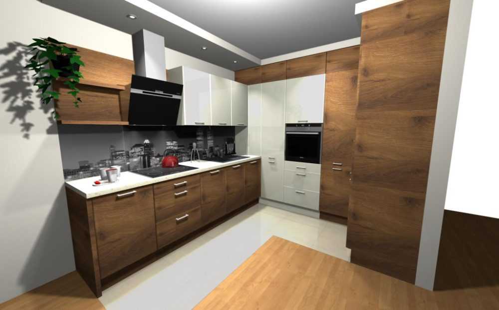 На кухне площадью от 13 до 16 м² поместится больше людей, а значит, вариантов ее планировки тоже намного больше. В ней станет светлее, если на балконе и фартуке над плитой поставить окна.