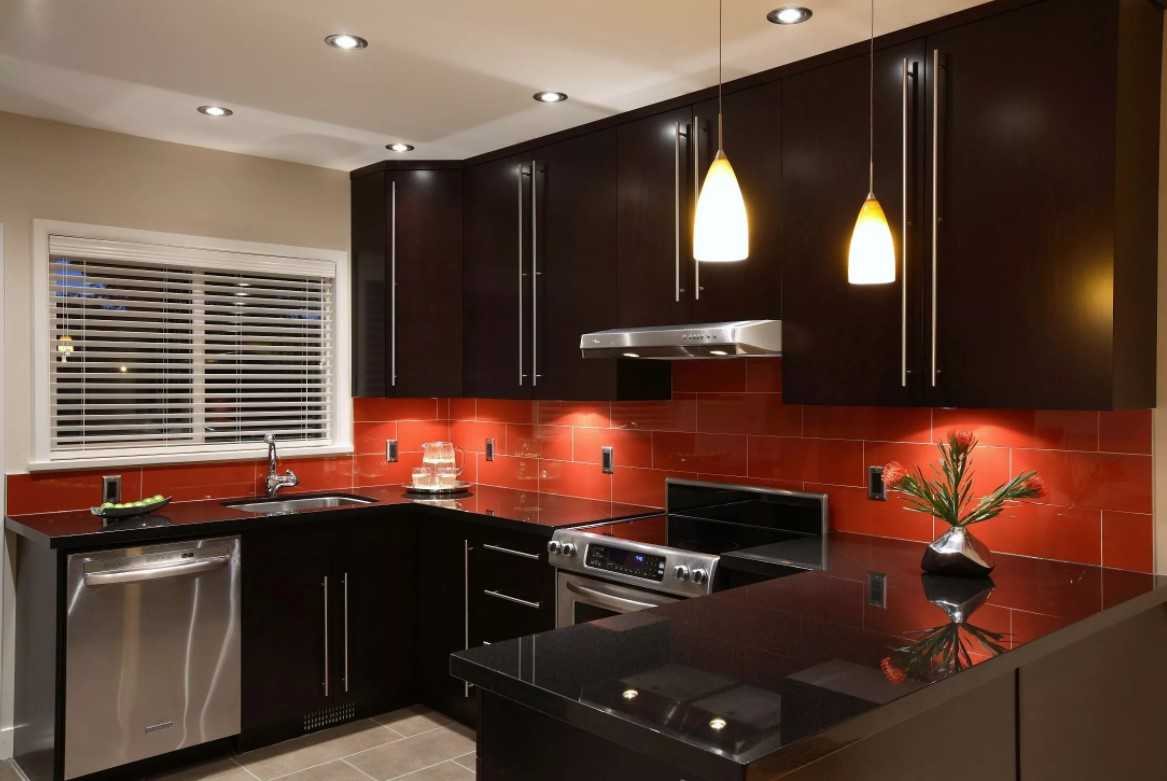 Расцветка столешницы обязана гармонично сочетаться не лишь со стенками и мебелью, но и с кухонным фартуком. Резкий контраст меж ними зрительно уменьшат этот участок пространство.