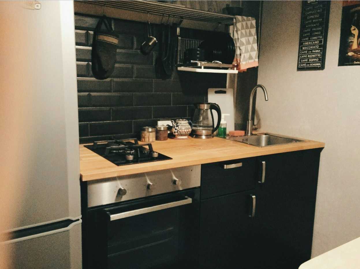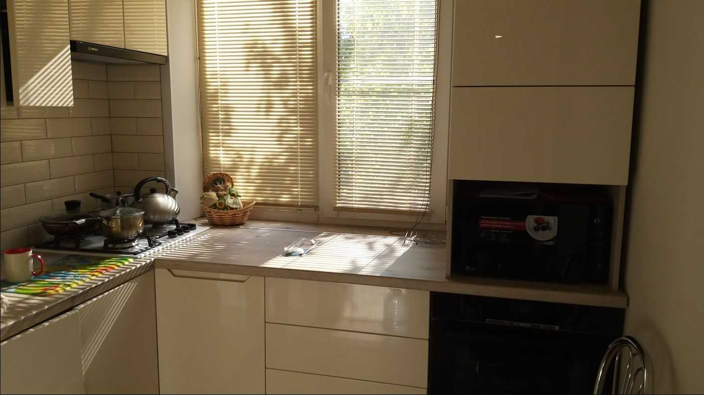 Чтобы обеспечить себе возможность свободно передвигаться по такой крошечной кухне, мебель и инвентарь на ней стоит располагать определенным образом. Холодильнику место в углу, а дивану – у стены. Подоконниками тесных кухонь можно пользоваться как столами, ставя сверху посуду. Или сидеть на них, положив большие подушки.