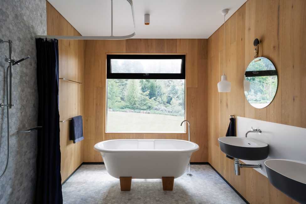 Ограниченная в большом пространстве ванная комната создает теплый и особый комфорт