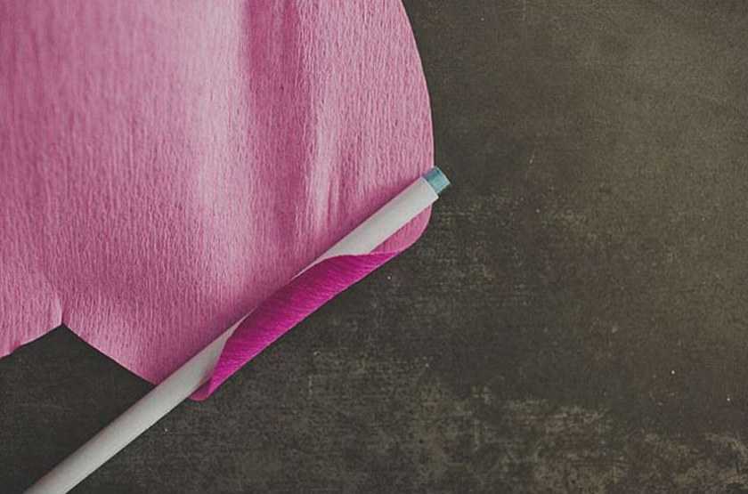 - Сворачивание креповой ленты. На деревянную шпажку ли металлическую проволоку наматывается лента, изготовленная из гофрированной бумаги.