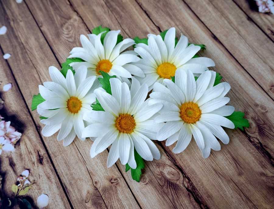 Ромашки из цветного фоамирана считаются изысканным украшением интерьера. Они лаконично смотрятся в вазочке на кухне, гостиной и спальной комнате. Вы также можете использовать их для декорирования обручей и детских заколок. Техника создания представлена в следующем фотоуроке.
