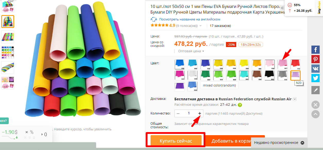 - Китайский продукт поставляется рулонами 1х2 м, листами 0,5х0,5 м или формата А4.