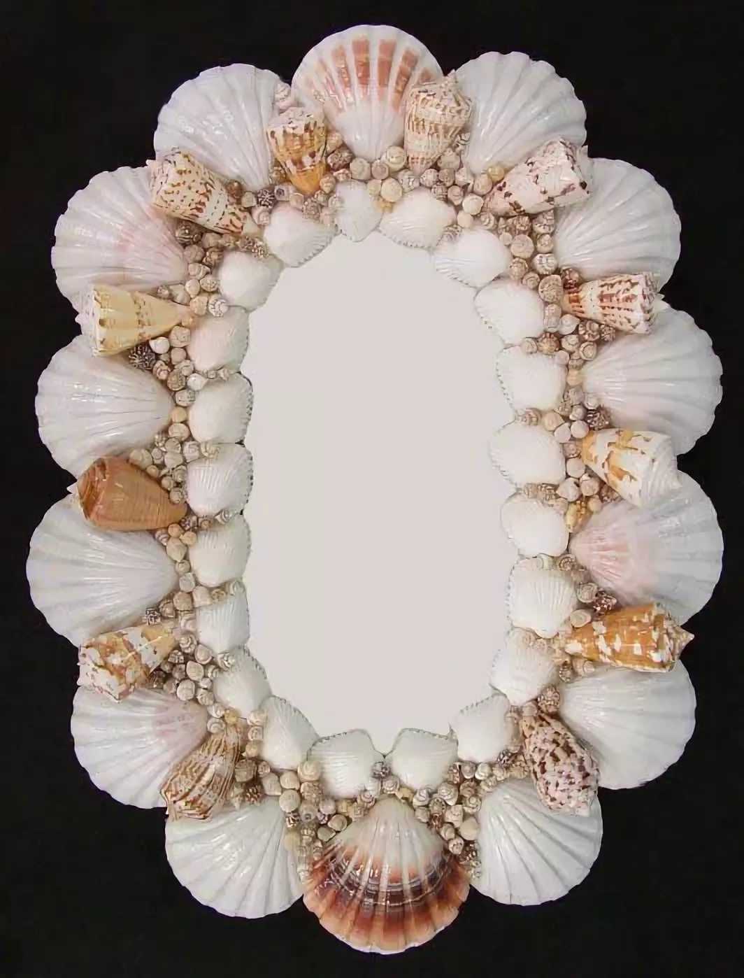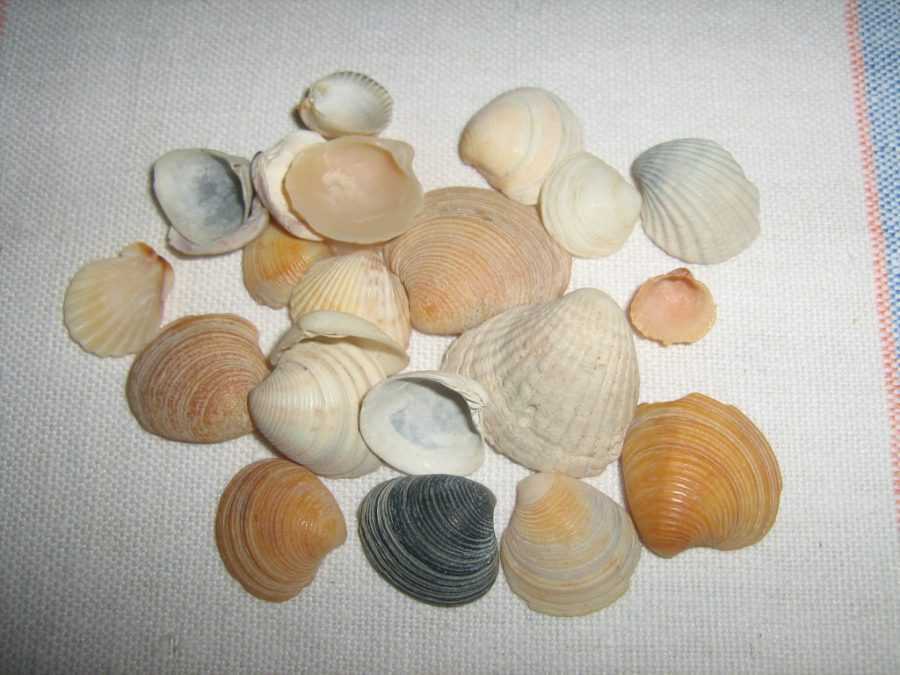 - Ракушки самых различных форм и расцветок. Вы можете сами собрать их на отдыхе или купить в сувенирной лавке. Собранные собственноручно ракушки необходимо тщательно промыть. Чтобы удалить останки моллюсков, которые в них жили, следует проварить ракушки в кипящей воде не менее часа с добавлением уксуса (из расчета 1 ст.л. уксуса на 1 литр воды), вычистить и просушить. Обломанные края ракушек могут быть очень острыми и поранить. Поэтому необходимо зачистить их наждачной бумагой или пилочкой для ногтей. Если Вам не нравится какой-либо цвет или оттенок природного материала, то Вы можете покрасить его акриловыми красками, морилкой и вскрыть любым лаком. Однако тщательно комбинируя естественные оттенки ракушек, можно добиться очень красивого эффекта. Следует сказать, что изобилие разных ракушек может смутить новичка, который впервые взялся за освоение этого творчества. Поэтому для начинающих можно посоветовать взять две-три крупные раковины, а к ним добавить несколько более мелких, гармонирующих или дополняющих эти большие элементы.