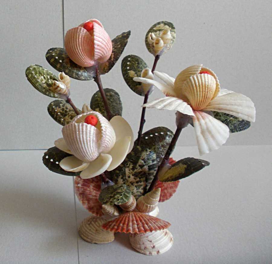 Некоторые виды ракушек весьма напоминают лепестки цветов. По этой причине отдельные виды морских раковин стали применять для создания как конкретных цветов, так и букетов. Например, из ракушек розового цвета можно изготовить чудесную розу.