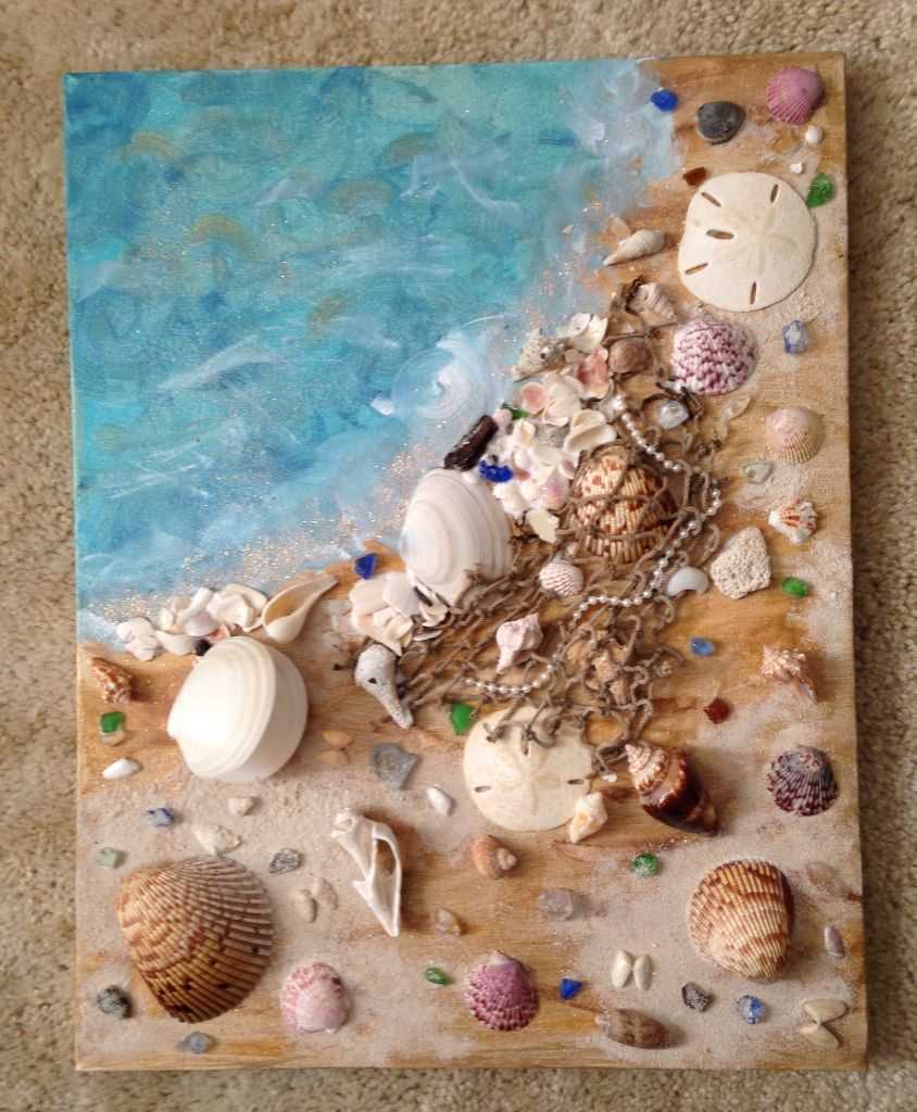 Панно из ракушек и песка создается аналогично. Только в качестве