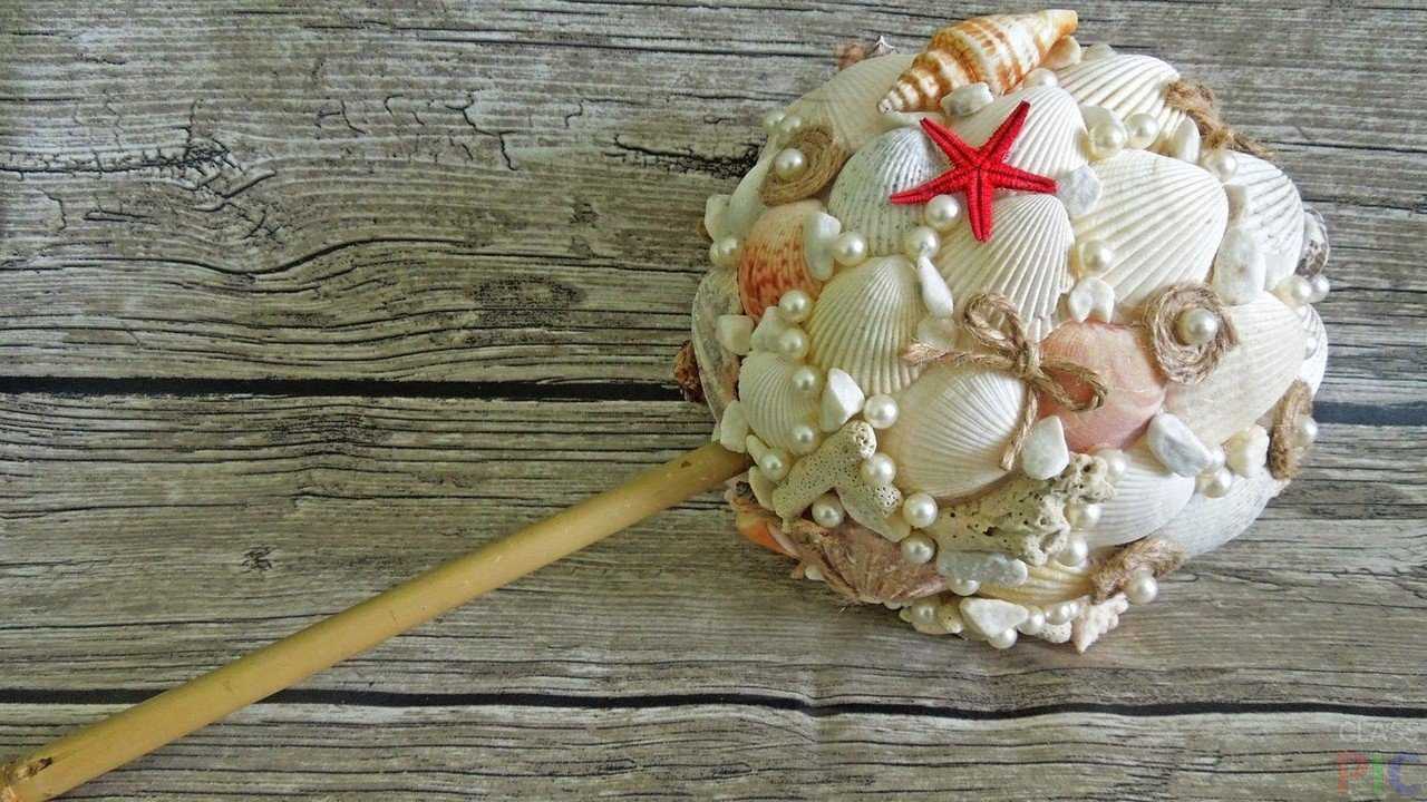 Эта современная поделка, наполненная тайным смыслом, придаст интерьеру дома некоторую недосказанность и загадочность. Применяемые для изготовления раковины можно раскрасить в яркие цвета.