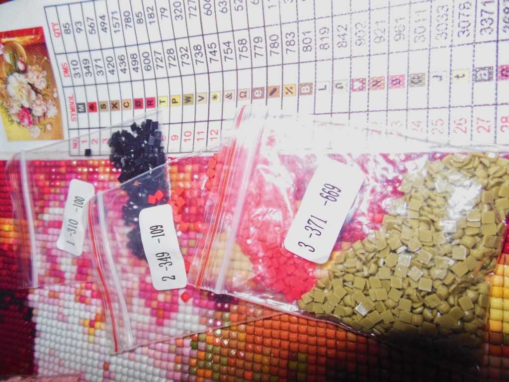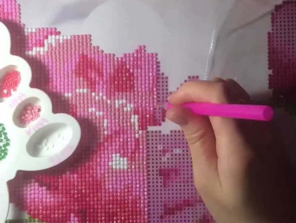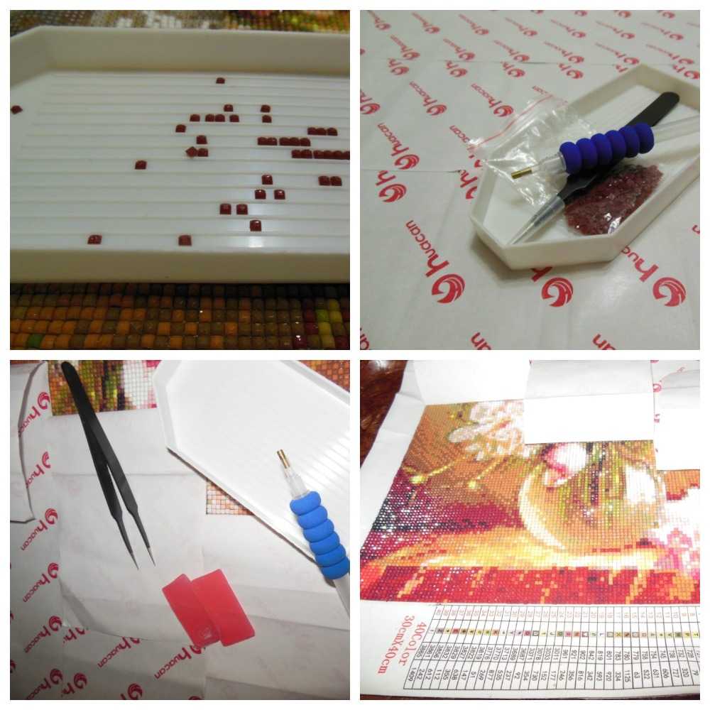 Название это в некоторой мере условное, потому что ни нитки, ни иголка в процессе не участвуют. Акриловые (алмазные) кристаллы выкладывают на подложку, на которую нанесен тонкий слой специального клея.