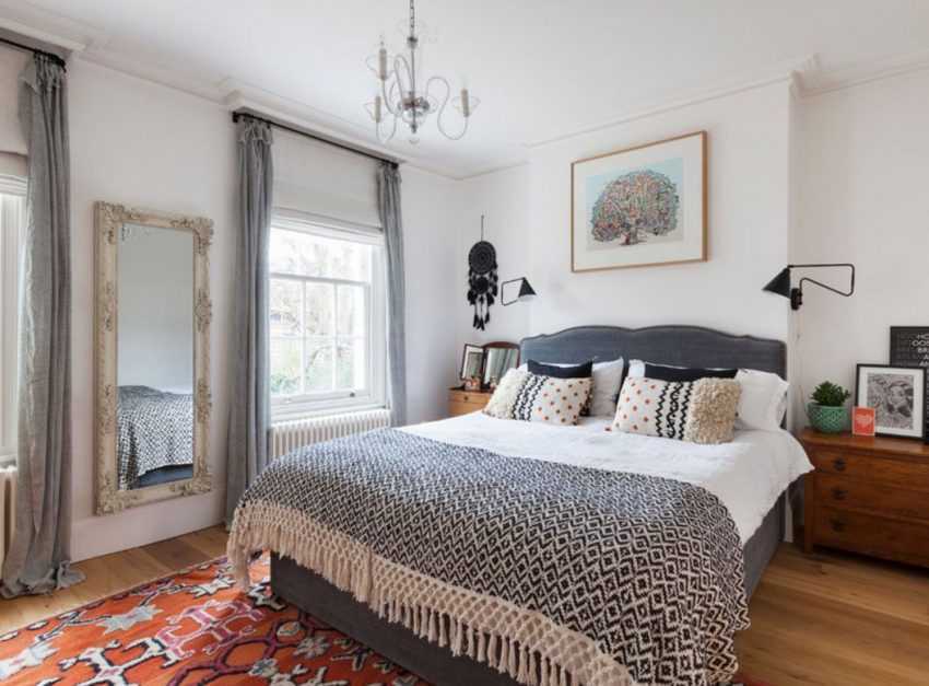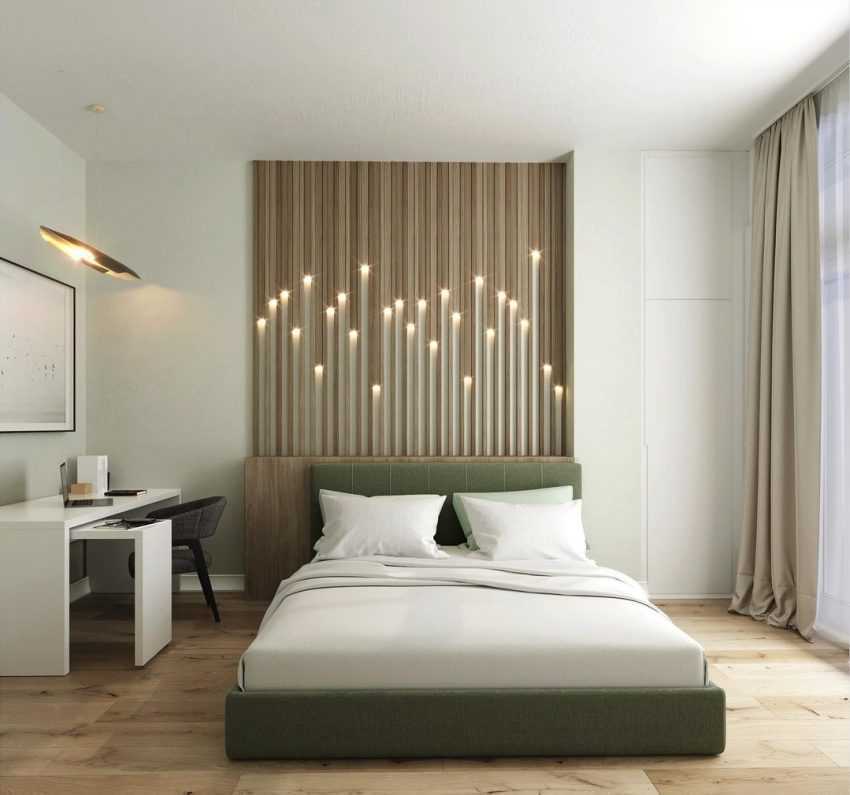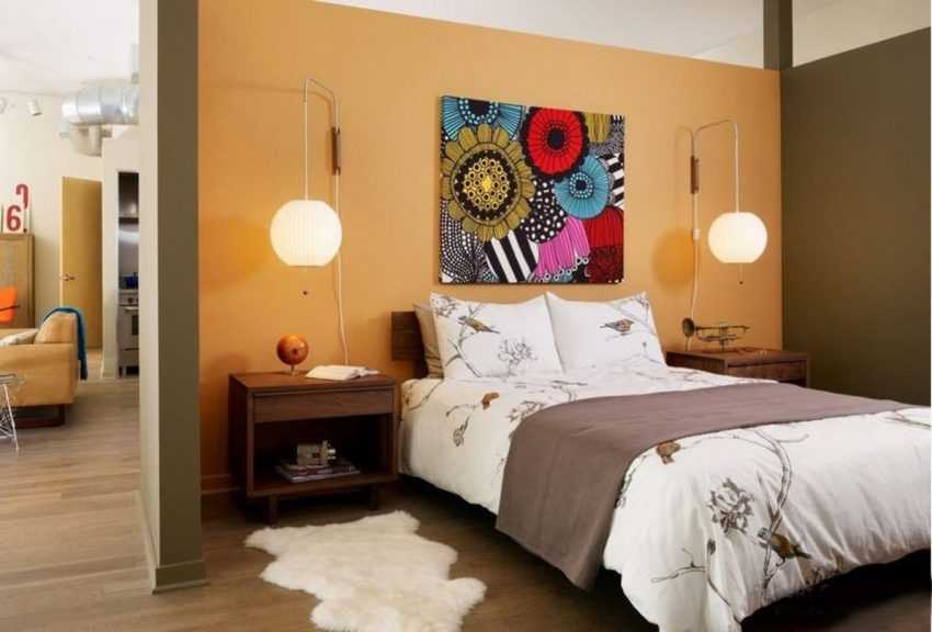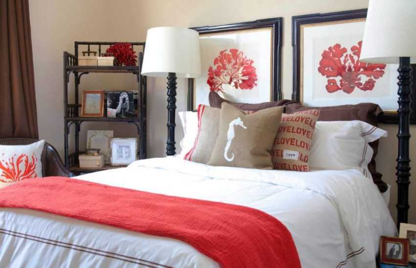 Интерьер должен быть тёплым, комфортным, законченным. Не должно возникать гнетущего ощущения, атмосфера должна быть приятной, настроенной на позитив. Идеально подходит стена у изголовья. Эта часть пространства остается пустой. Благодаря данному решению вид заиграет новыми красками.