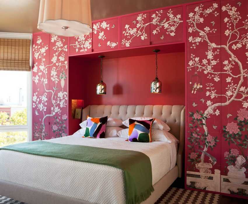 Альтернативой уже перечисленным способом обрамления изголовья могут служить ширмы или шкафы. Ширму можно расположить позади кровати, как у стены, так и на свободном месте. Во втором случае ширма не только заменит изголовье кровати, но и разделит пространство спальни на зону сна и зону отдыха.